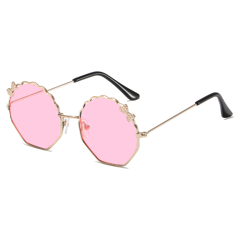 새로운 금속 활 어린이 선글라스 다각형 한국 스타일 선글라스 귀여운 사탕 안경