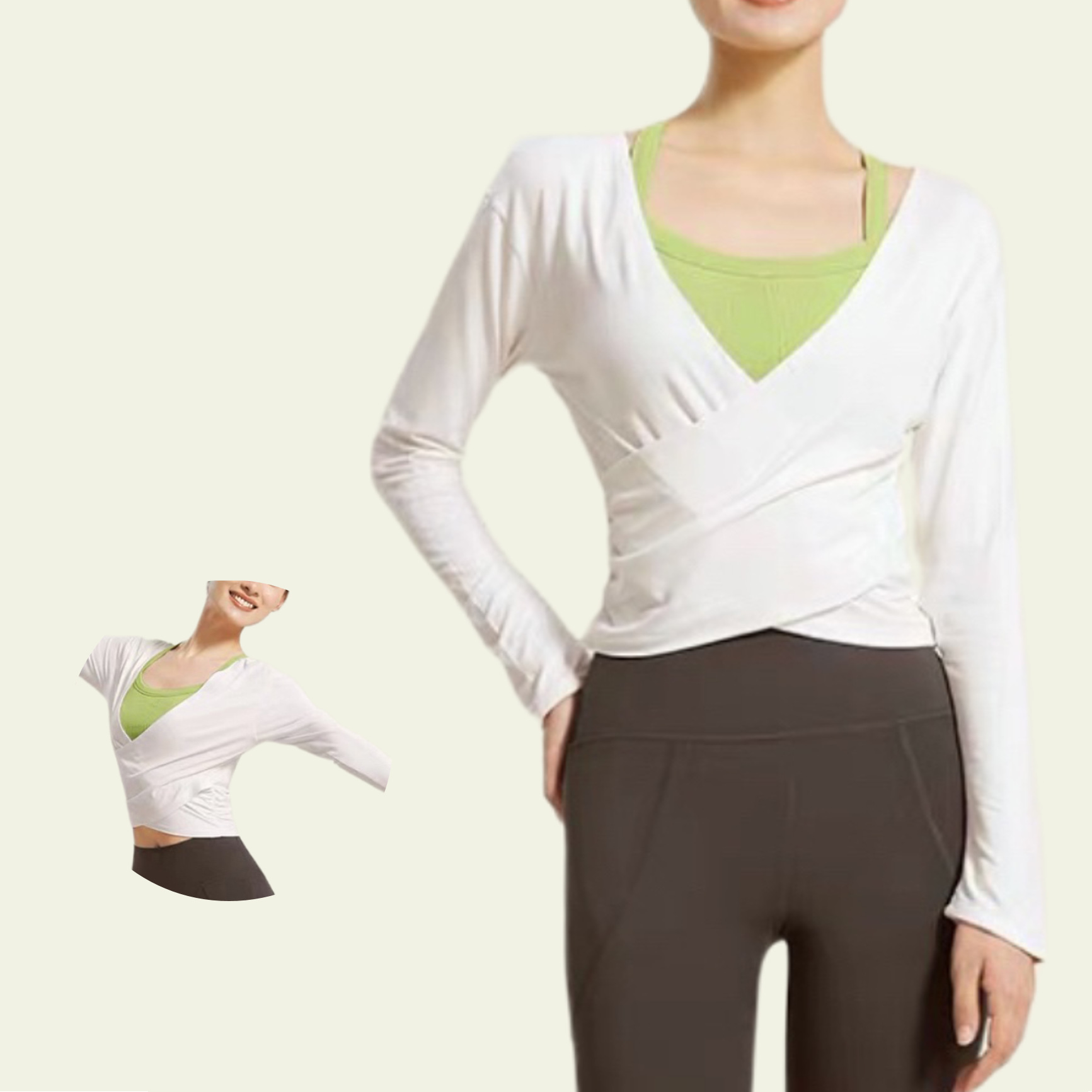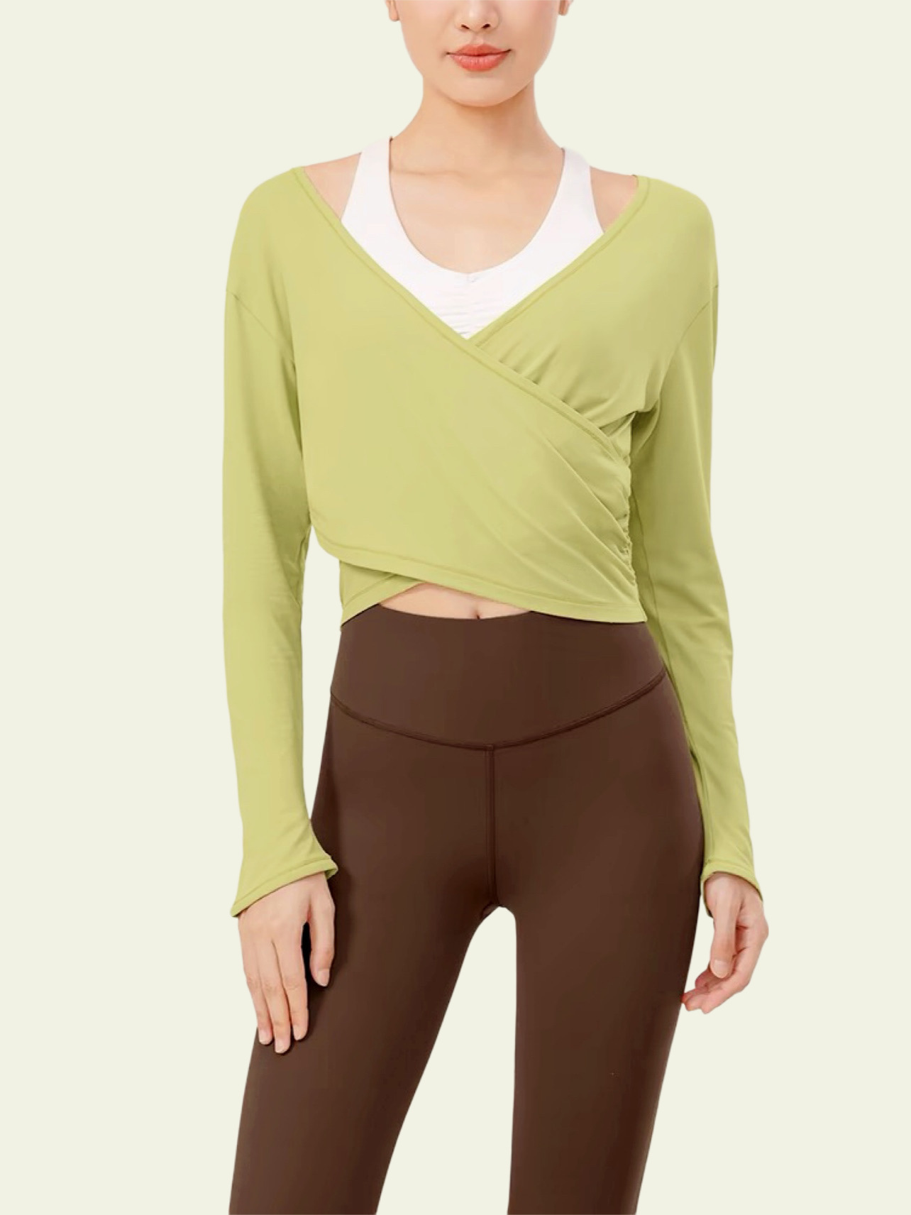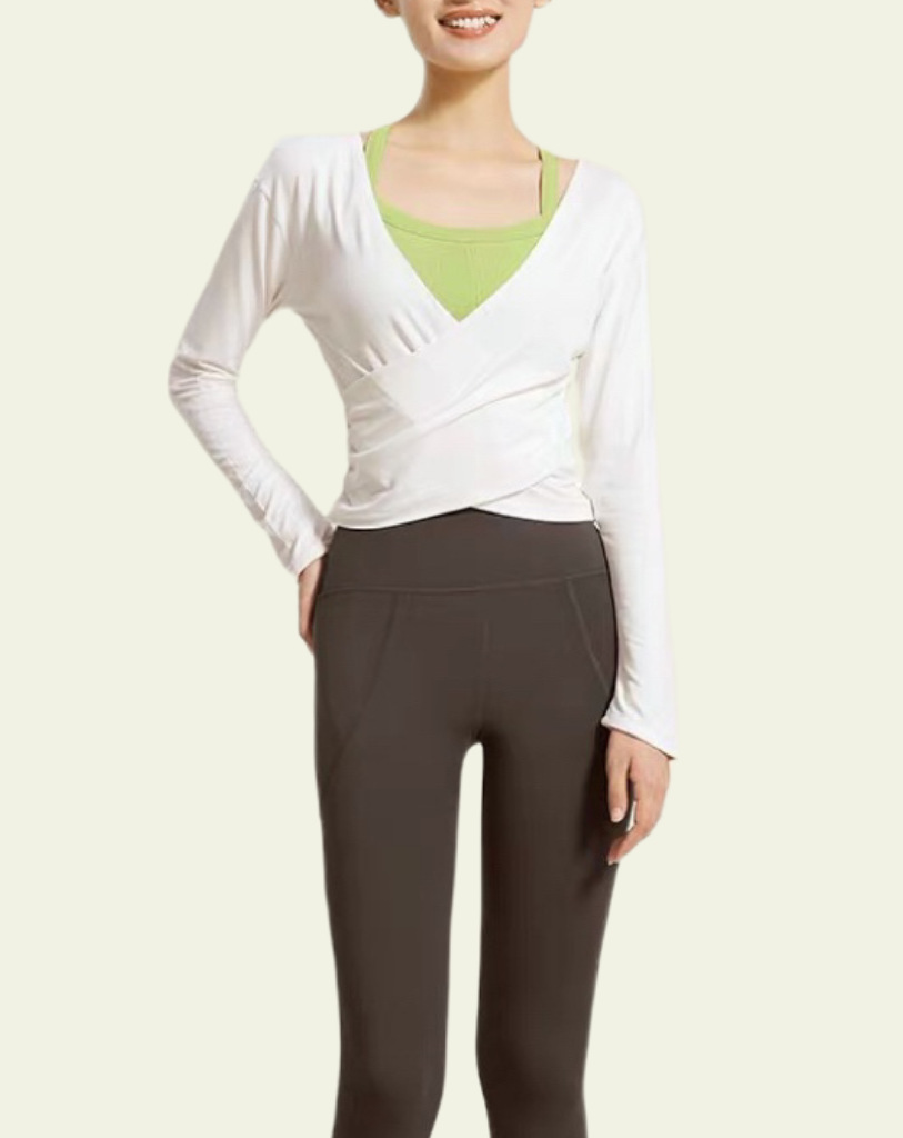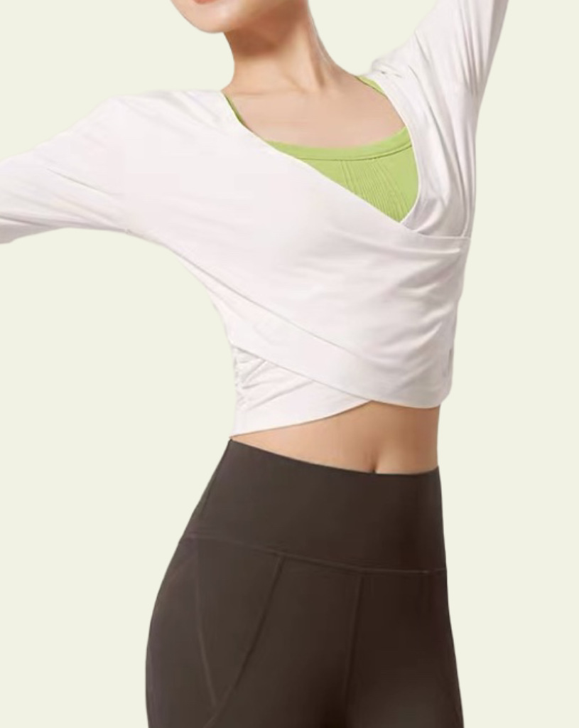 Qiao Yi 하이 레벨 요가 세트 긴팔 필라테스 빠른 드라이 블라우스 스포츠 최고 봄과 가을 슬림 슬리밍 피트니스 세트