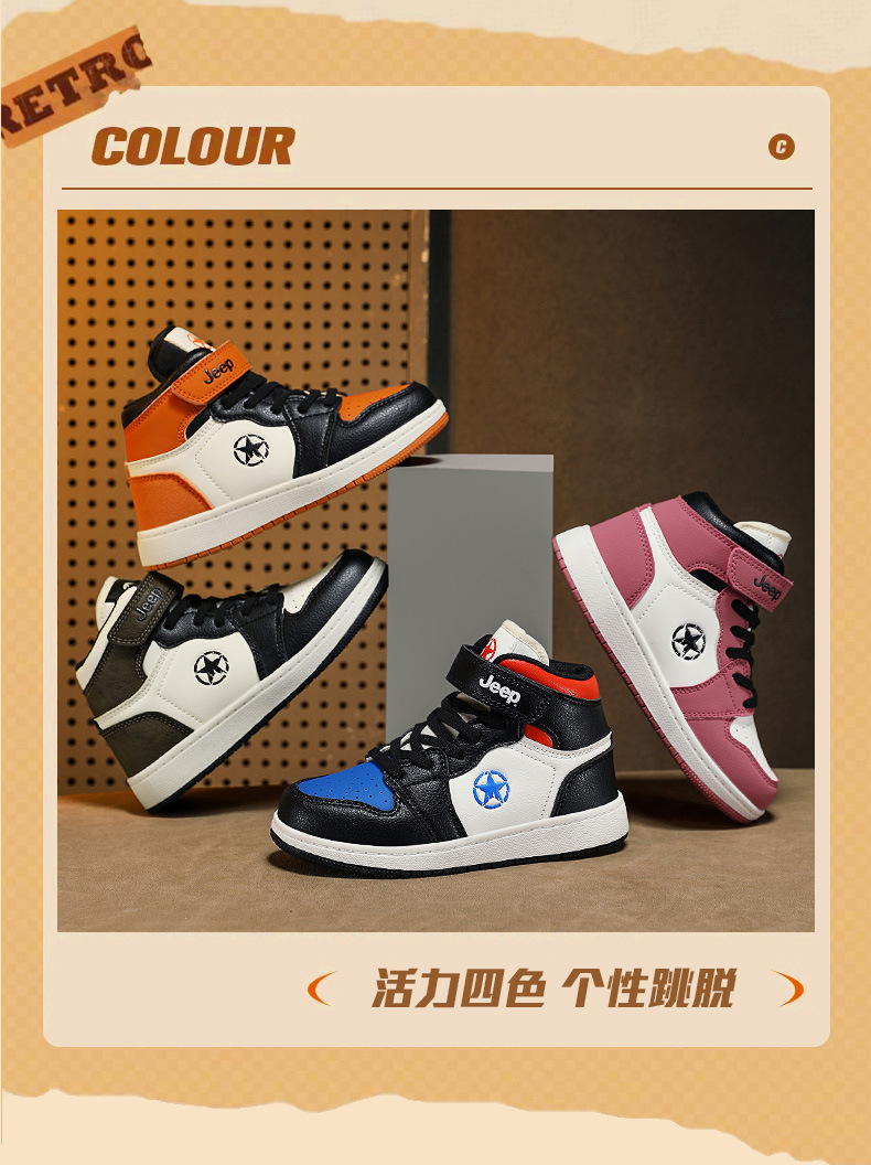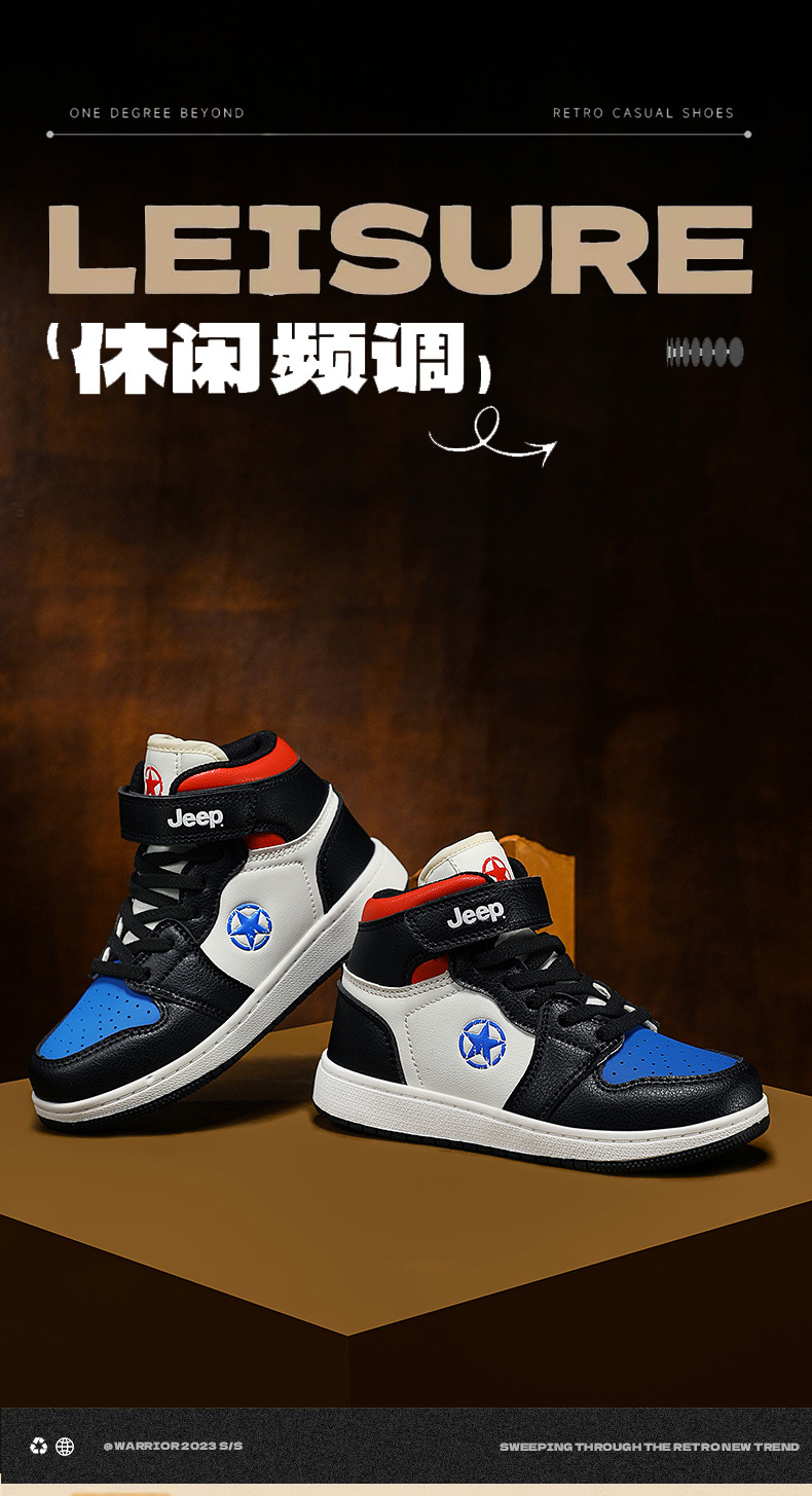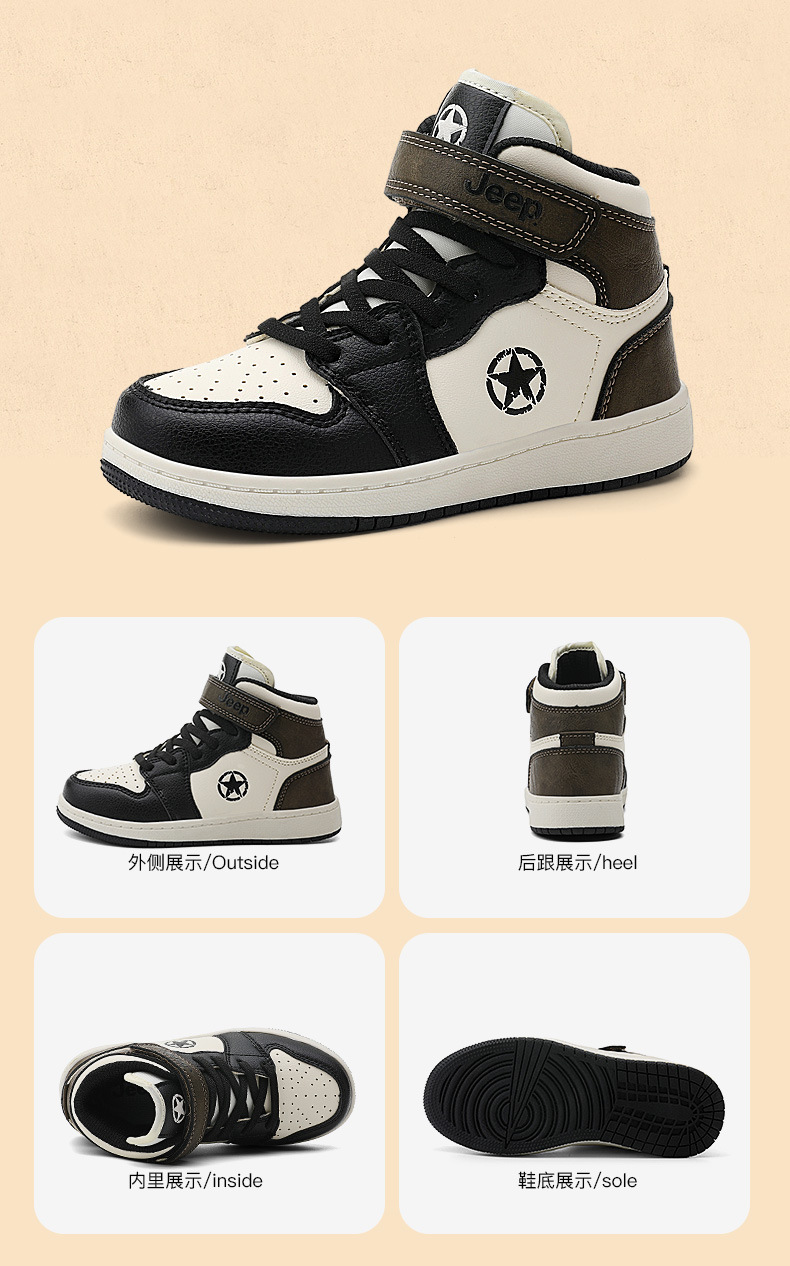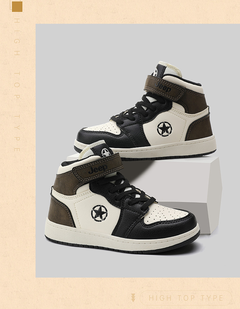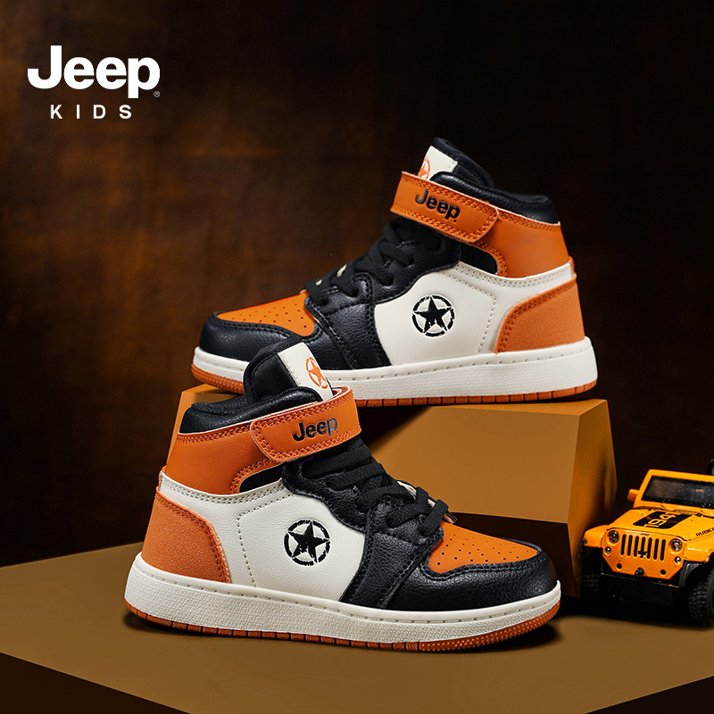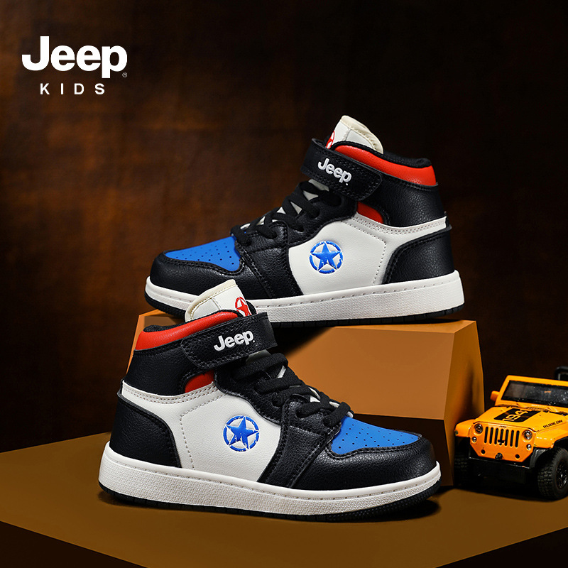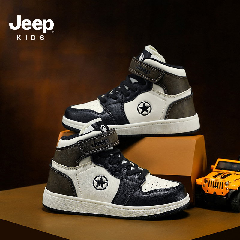 지프 소년 신발 2024 가을 새로운 경량 편안한 운동화 미끄럼 방지 방수 가죽 운동화 하이탑 신발