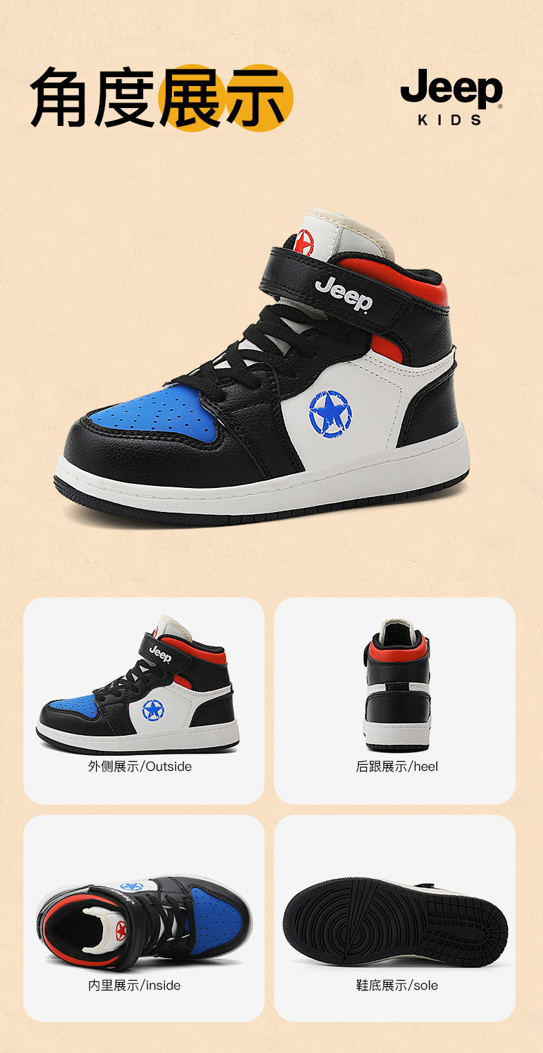 지프 소년 신발 2024 가을 새로운 경량 편안한 운동화 미끄럼 방지 방수 가죽 운동화 하이탑 신발스토어 가기