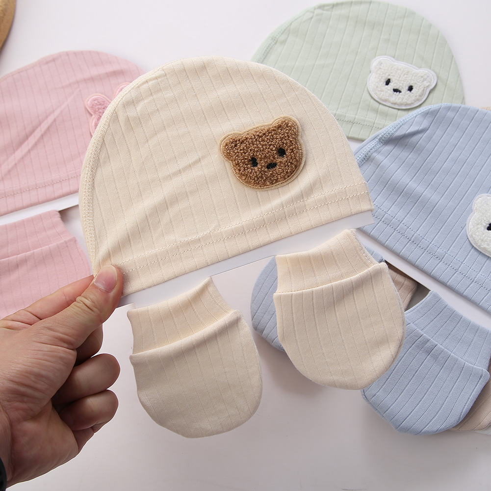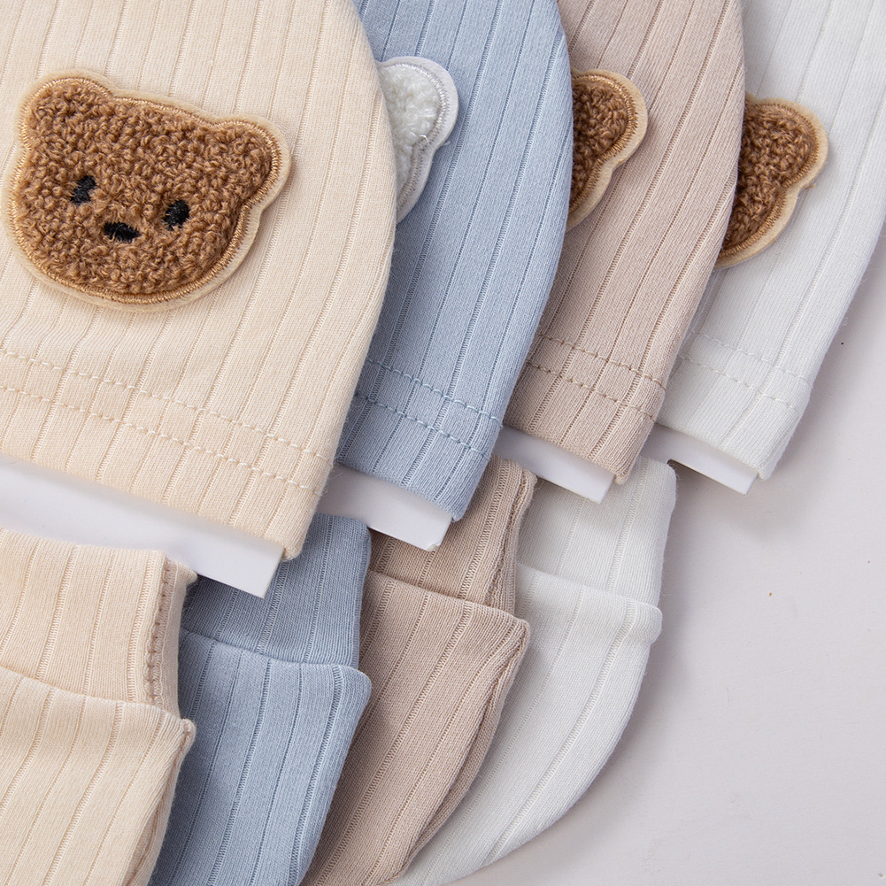 새 아기 곰 태아 모자 한국 유니섹스 아기 폰타넬 모자 신생아 유기 면 모자