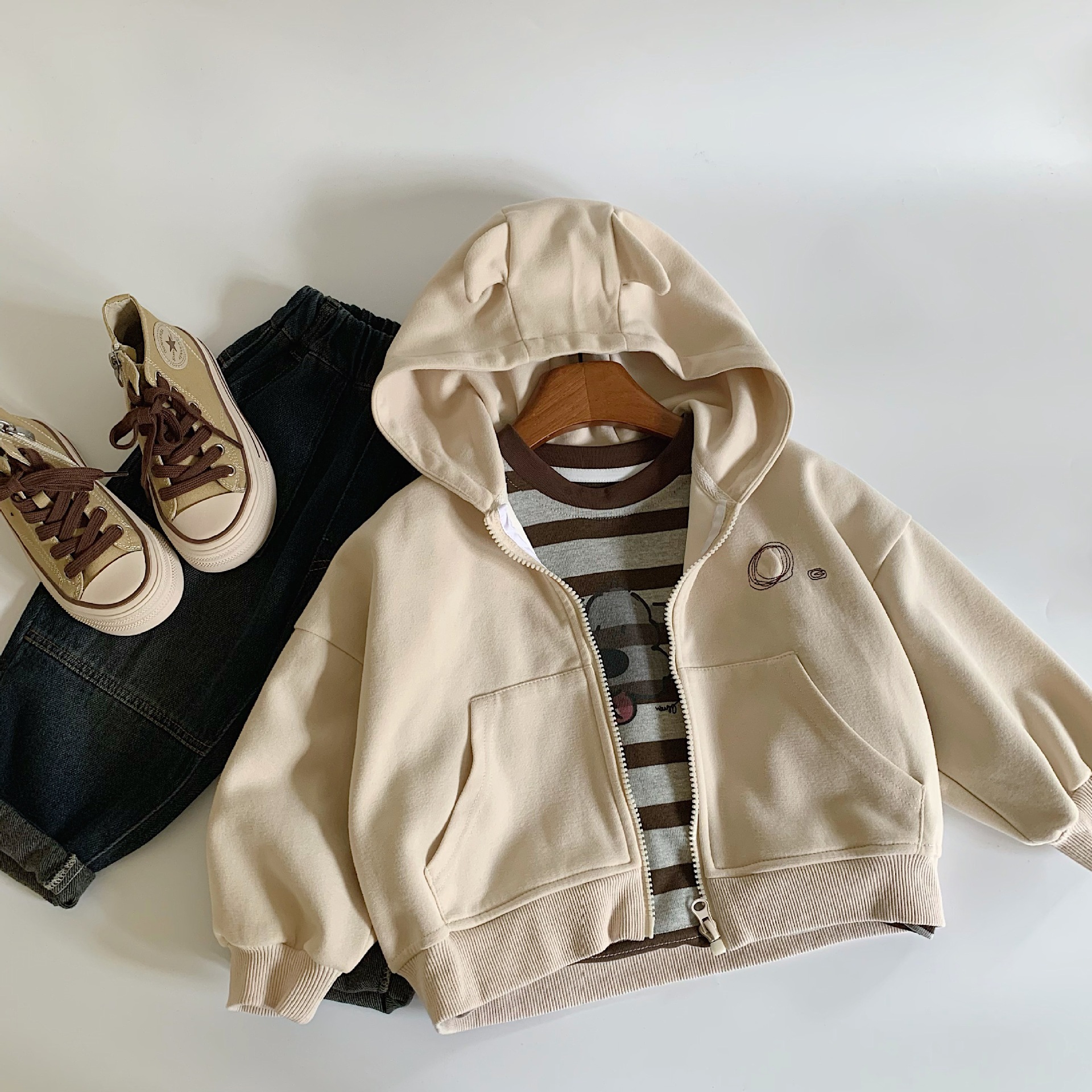 마이보 어린이 코트 2026 봄 신상품, 스타일리시한 풀오버, 남아 여아 자수 심플 스타일 후드탑 트렌디스토어 가기