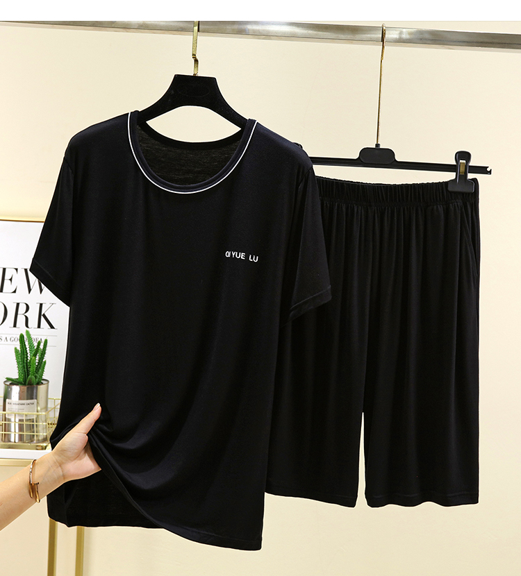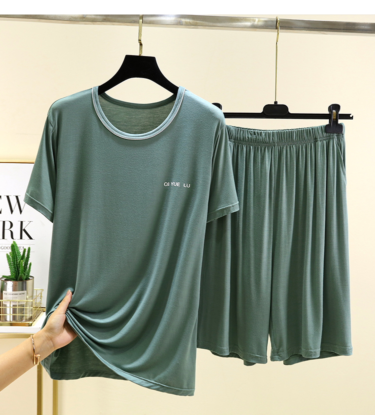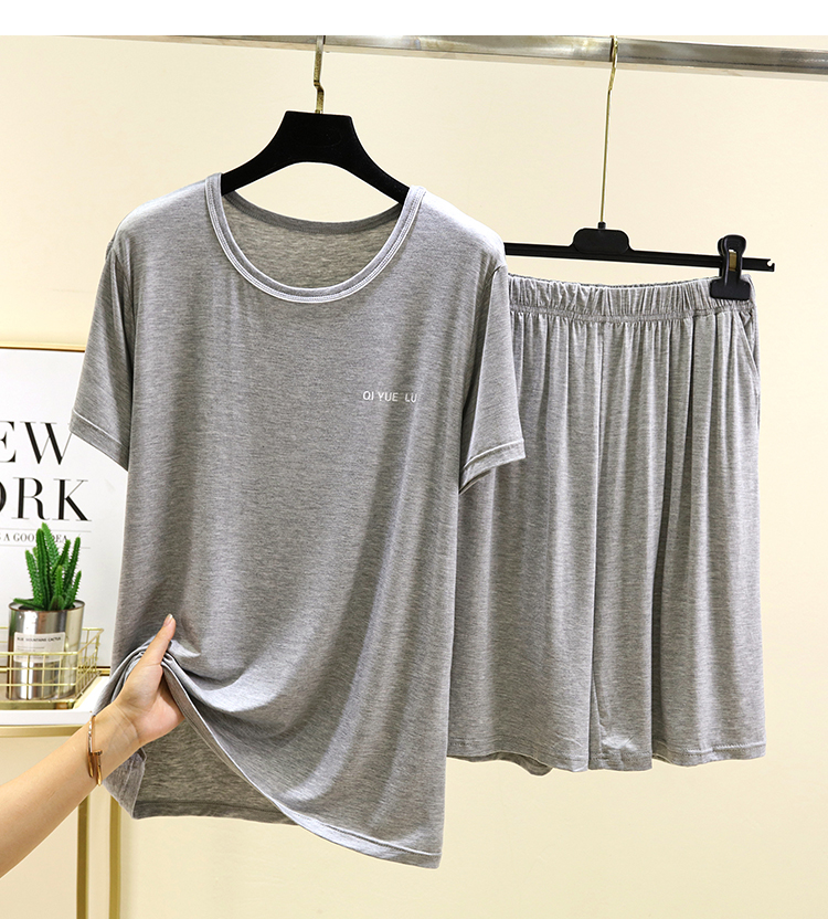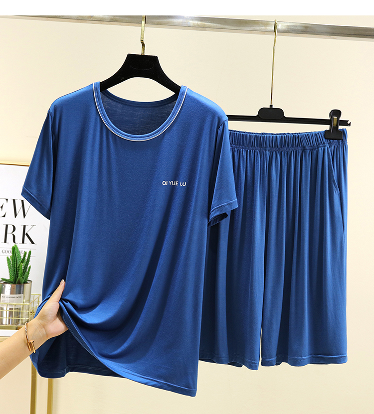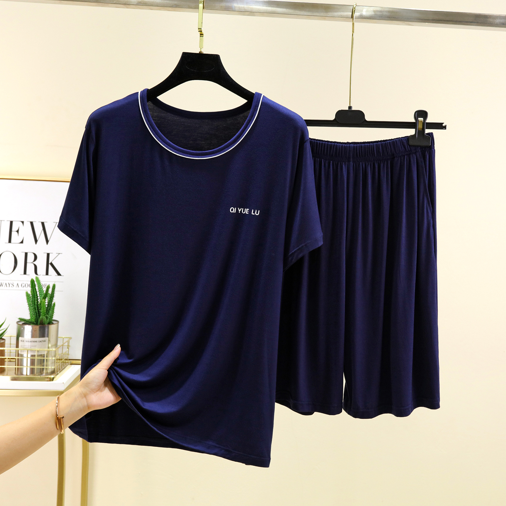여름 남성 모달 홈웨어 얇은 티셔츠 반바지 플러스 사이즈 중년 파자마 캐주얼 투피스 세트