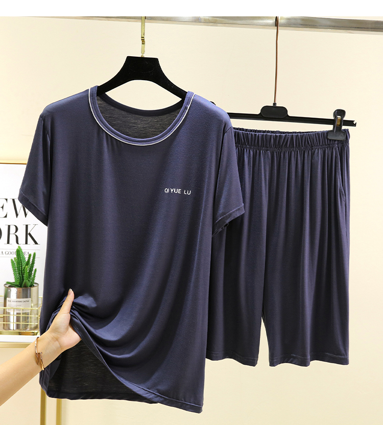 여름 남성 모달 홈웨어 얇은 티셔츠 반바지 플러스 사이즈 중년 파자마 캐주얼 투피스 세트스토어 가기