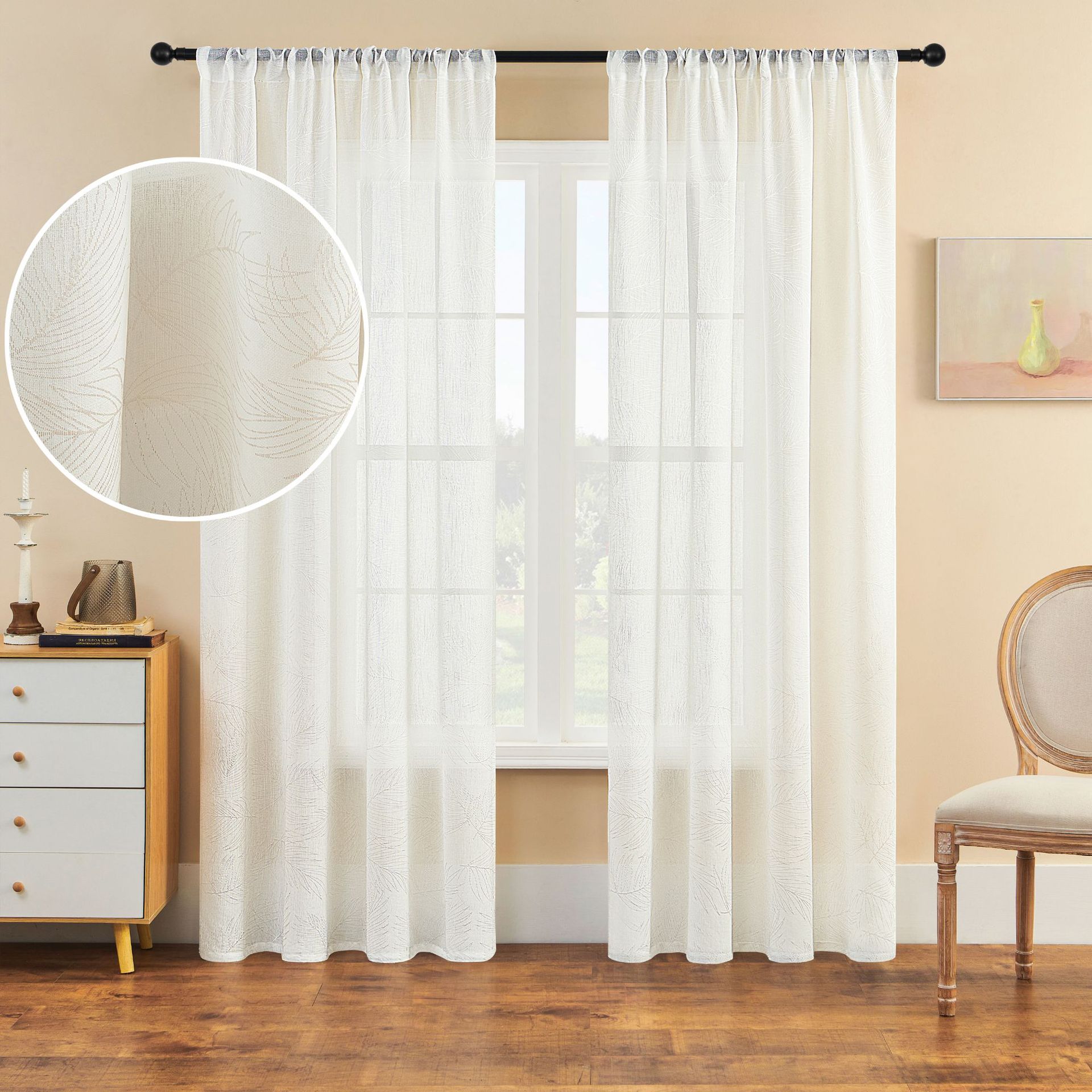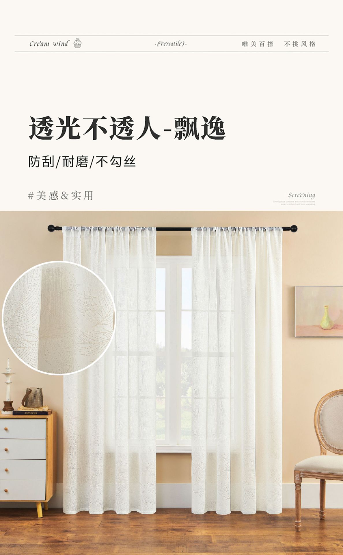 국경 간 무역 자카드 나뭇잎 무늬 흰색 커튼 쉬어 커튼 투광 불투명 창문 커튼 자외선 차단 발코니 완제품스토어 가기