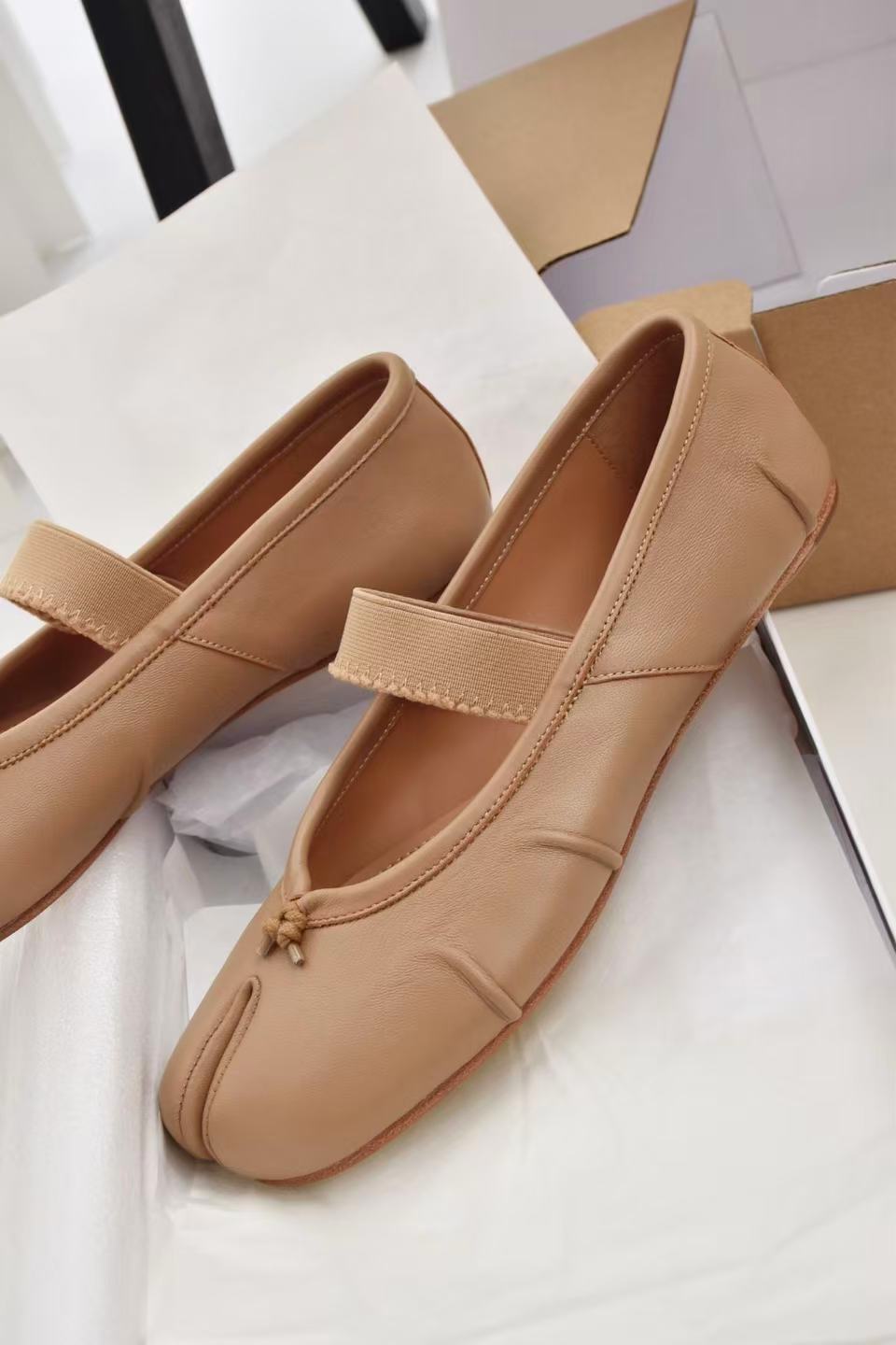 순수 오리지널 클래식 타비 신상 주름진 분리형 발가락 신발 여성용 천연 가죽 얕은 굽 발레 슈즈 부드러운 가죽 신발스토어 가기