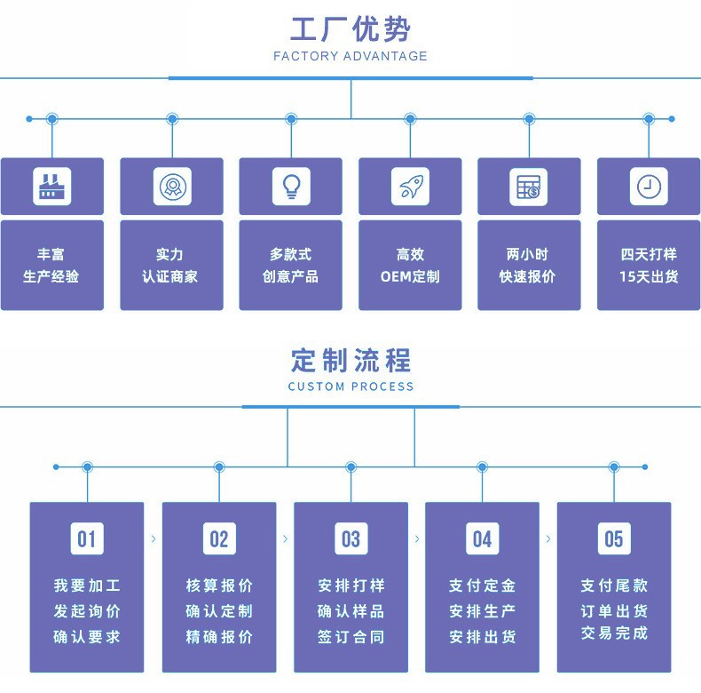 3.关于OEM定制。产品单价、打样费用、时间,根据各配件颜色、处理工艺、LOGO复杂度、包装、环保认证等要求有所不同。