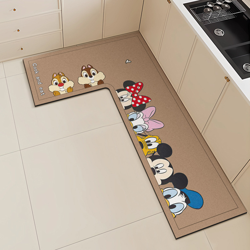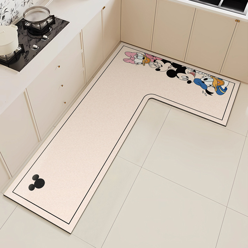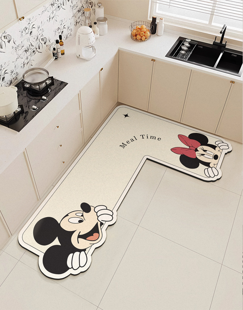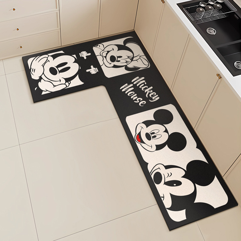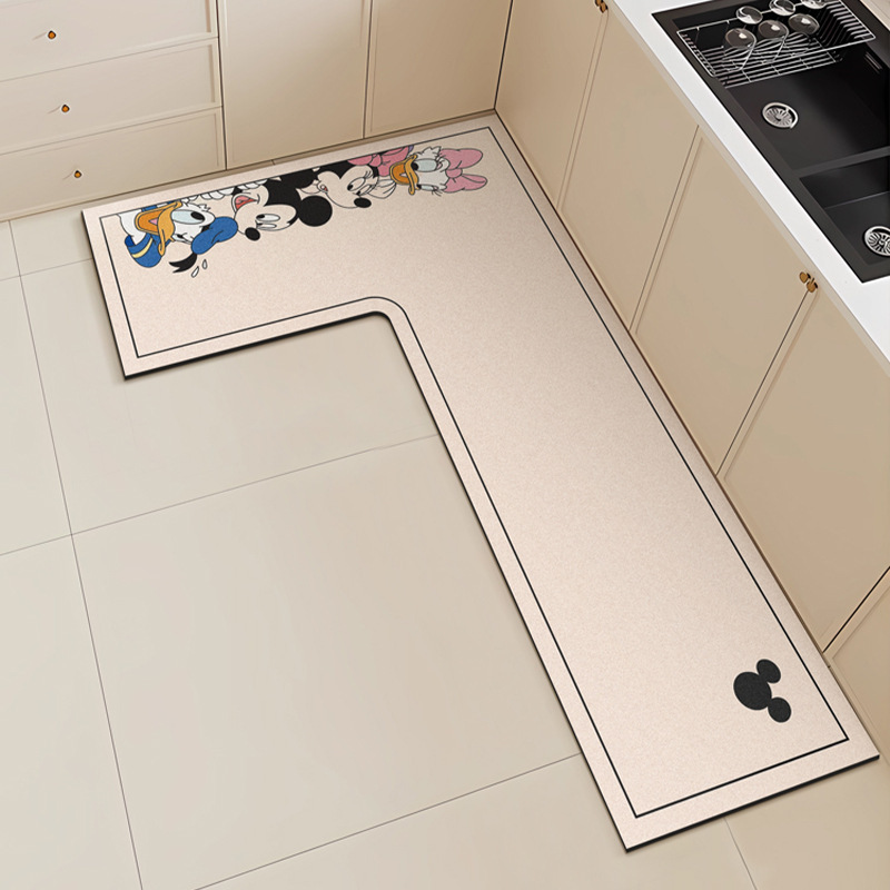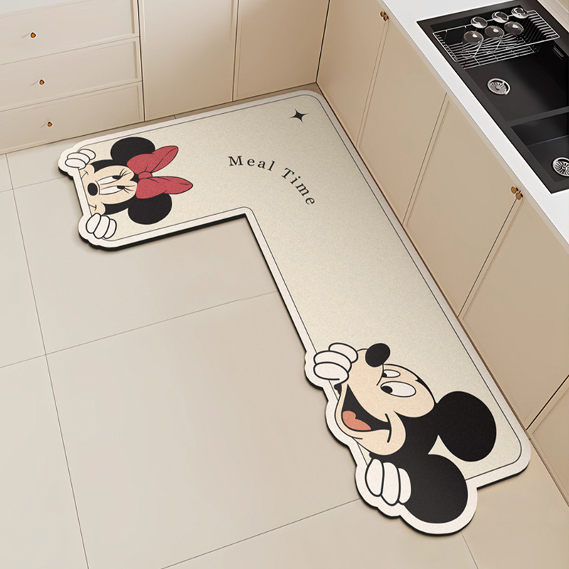 만화 L 자형 미키 디아톰 진흙 기름 흡수 주방 매트 가정용 물 흡수성 미끄럼 방지 간편한 바닥 매트 먼지 방지 빠른 건조 매트스토어 가기