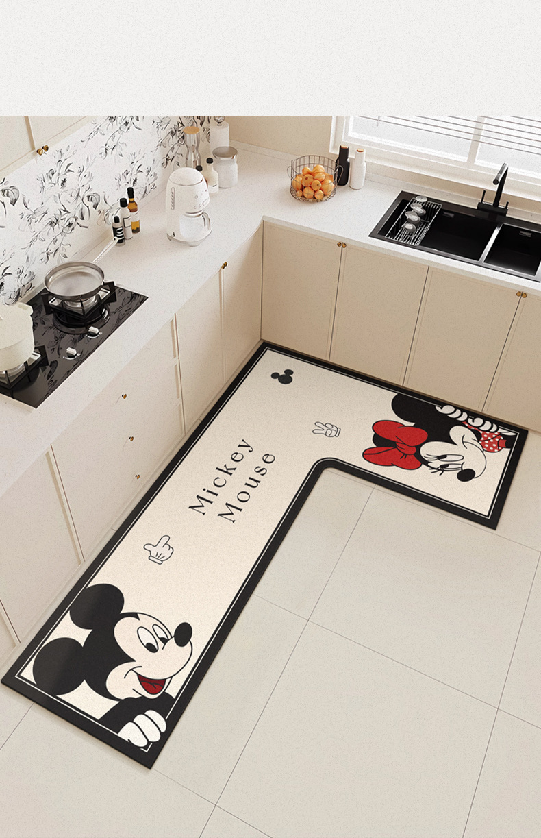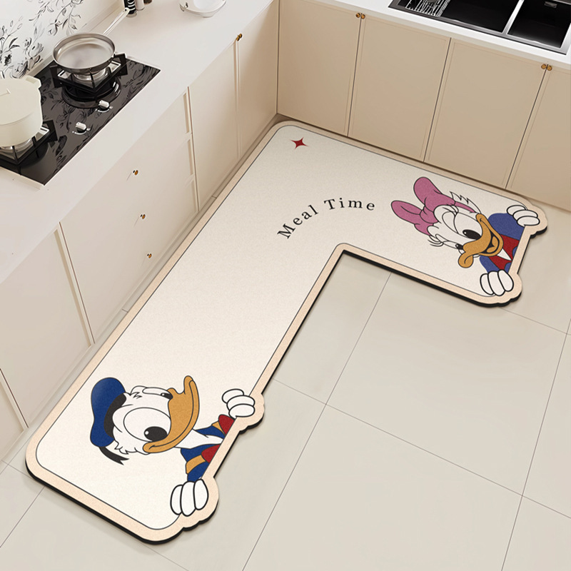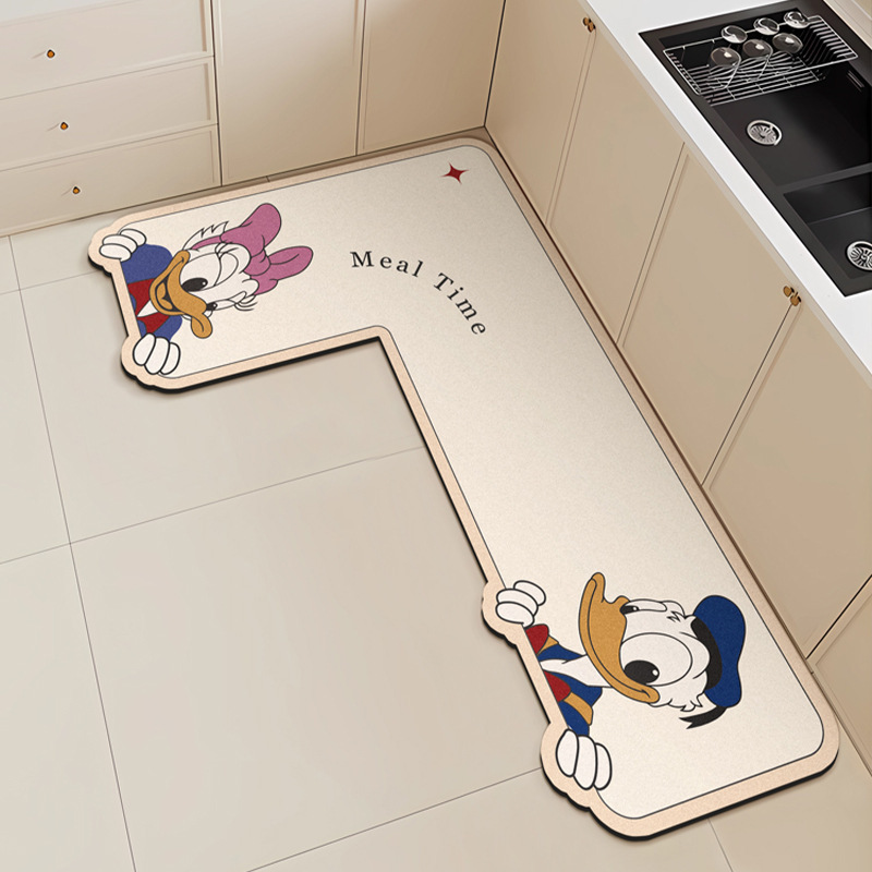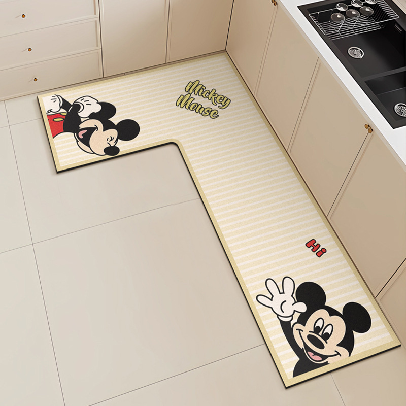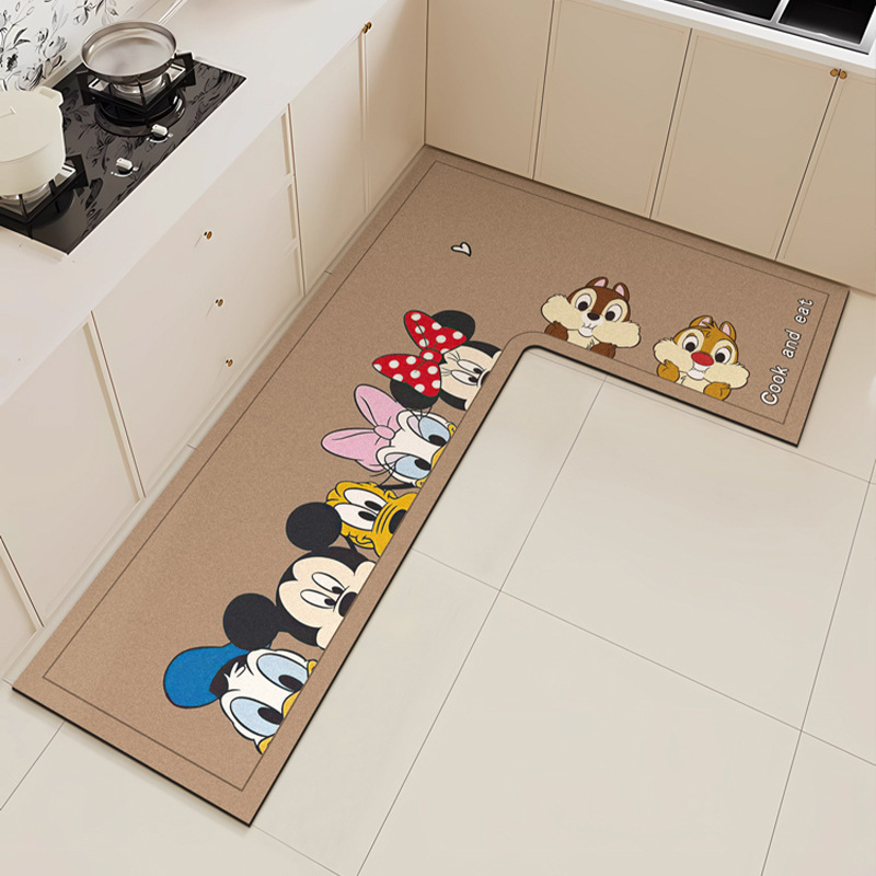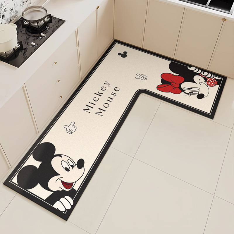 만화 L 자형 미키 디아톰 진흙 기름 흡수 주방 매트 가정용 물 흡수성 미끄럼 방지 간편한 바닥 매트 먼지 방지 빠른 건조 매트스토어 가기