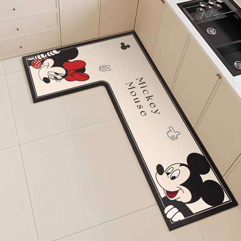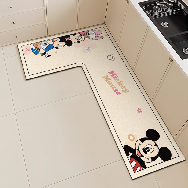 만화 L 자형 미키 디아톰 진흙 기름 흡수 주방 매트 가정용 물 흡수성 미끄럼 방지 간편한 바닥 매트 먼지 방지 빠른 건조 매트