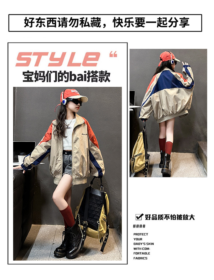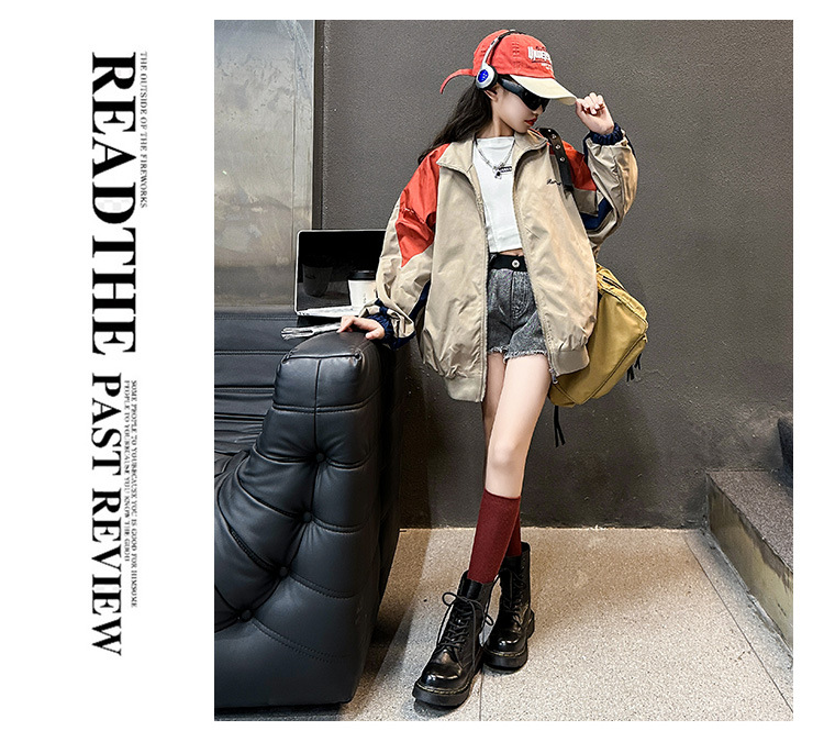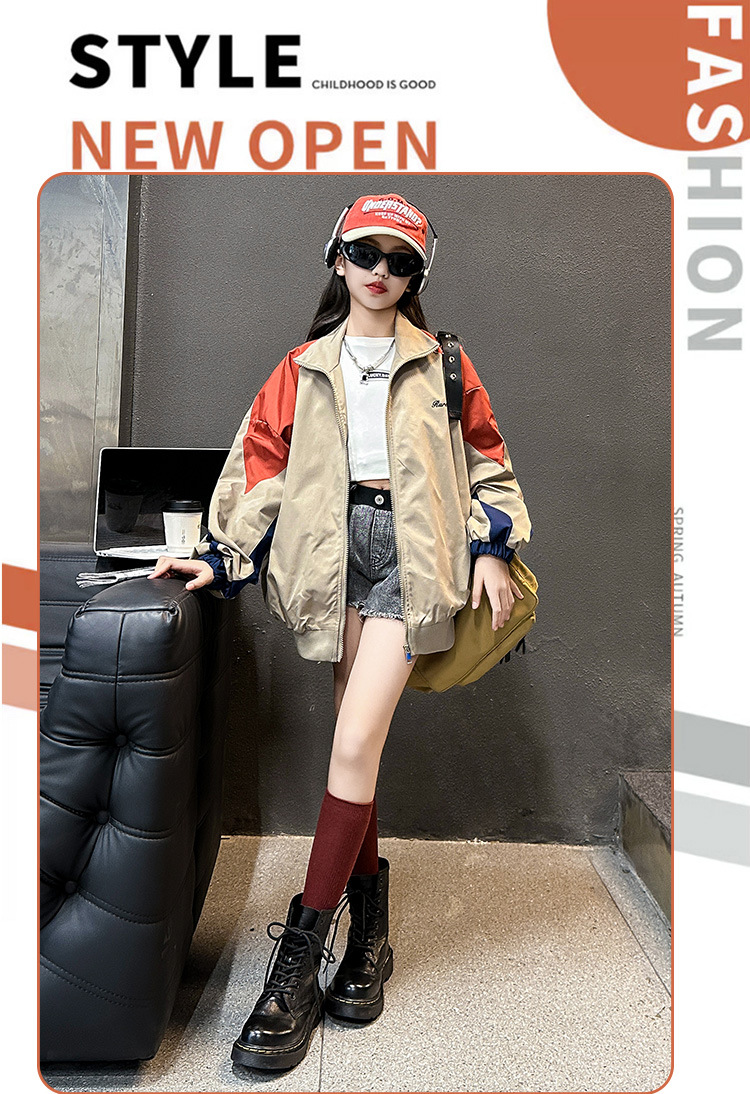 여아 컬러블록 자켓 2025 봄 가을 신상 중대형 아동용 스타일리쉬한 한국 스타일 재킷 상의 아동 야구복스토어 가기