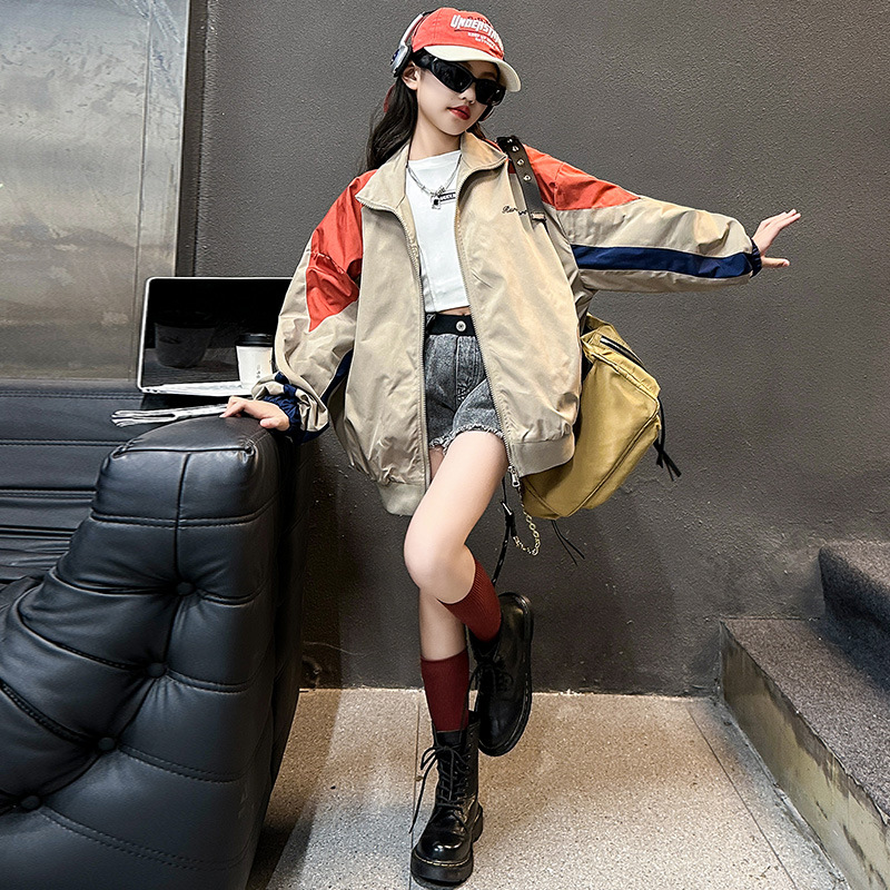 여아 컬러블록 자켓 2025 봄 가을 신상 중대형 아동용 스타일리쉬한 한국 스타일 재킷 상의 아동 야구복