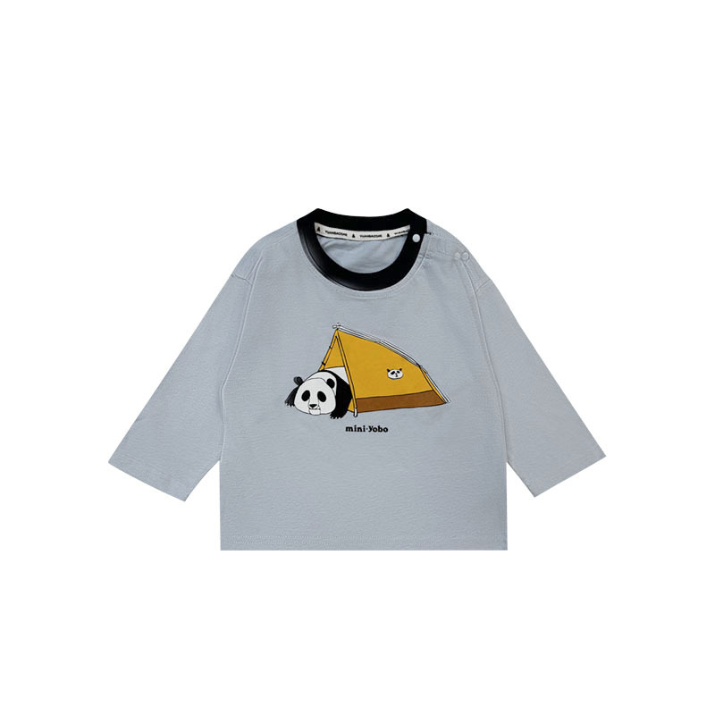 마운틴 스타일 야외 아동 의류 봄 2025 새로운 어린이 통기성 인쇄 긴팔 티셔츠 아기 라운드 넥 브러시 탑스토어 가기
