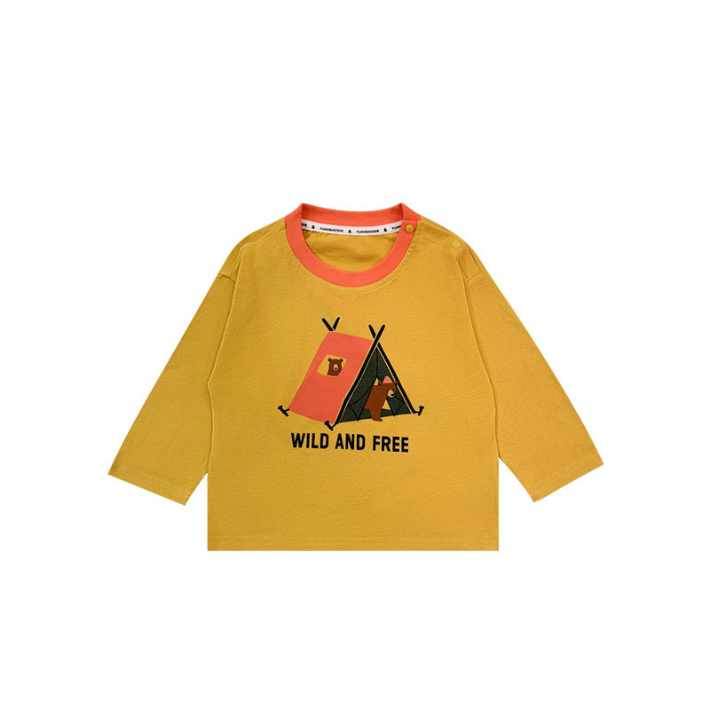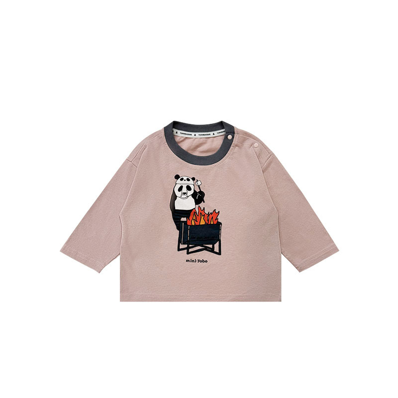 마운틴 스타일 야외 아동 의류 봄 2025 새로운 어린이 통기성 인쇄 긴팔 티셔츠 아기 라운드 넥 브러시 탑