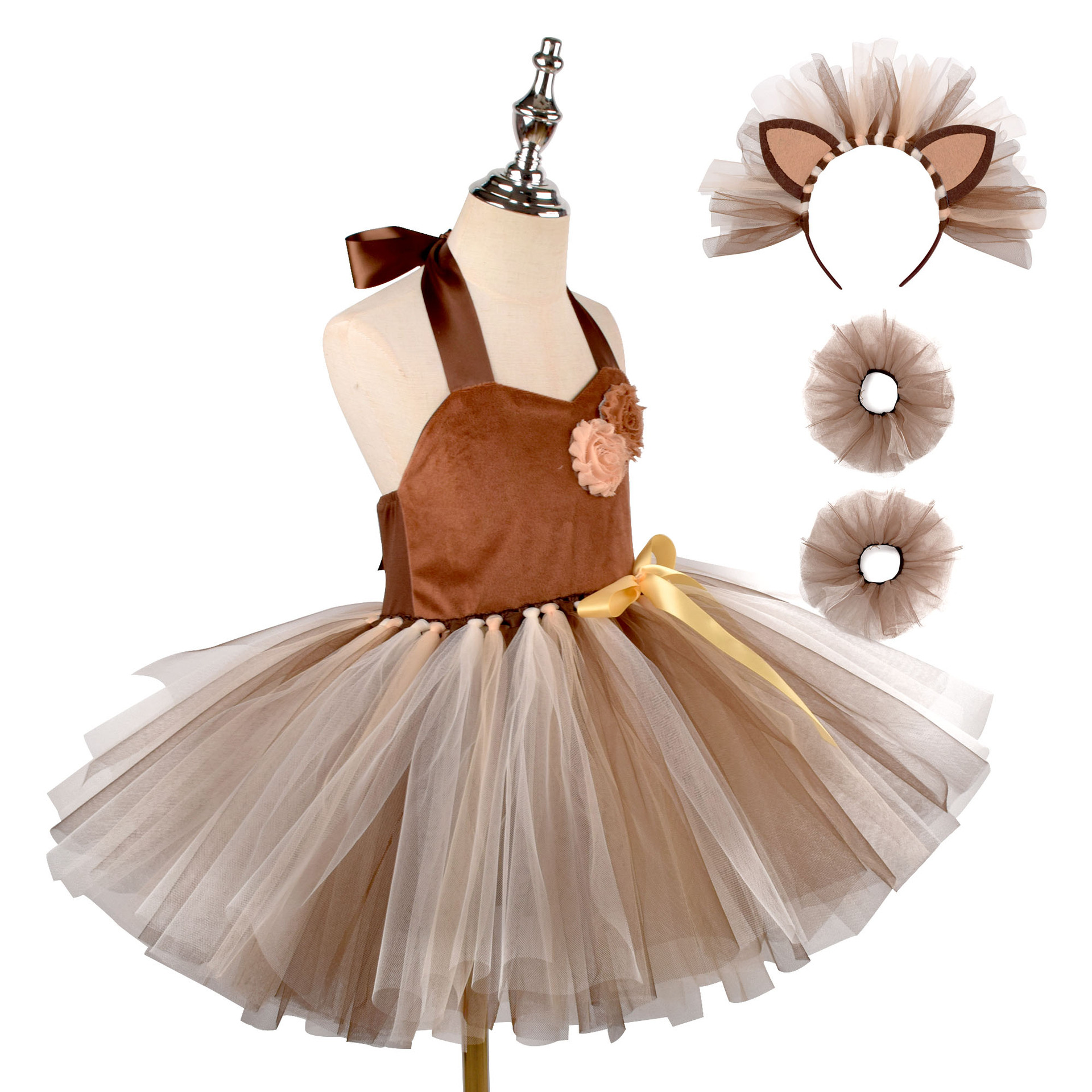 跨境女童动物世界狮子角色扮演连衣裙套装 万圣节派对演出小狮子舞台服装