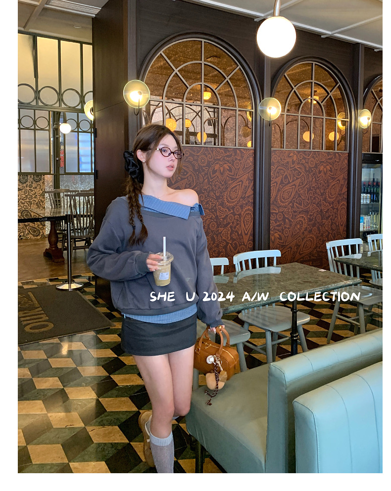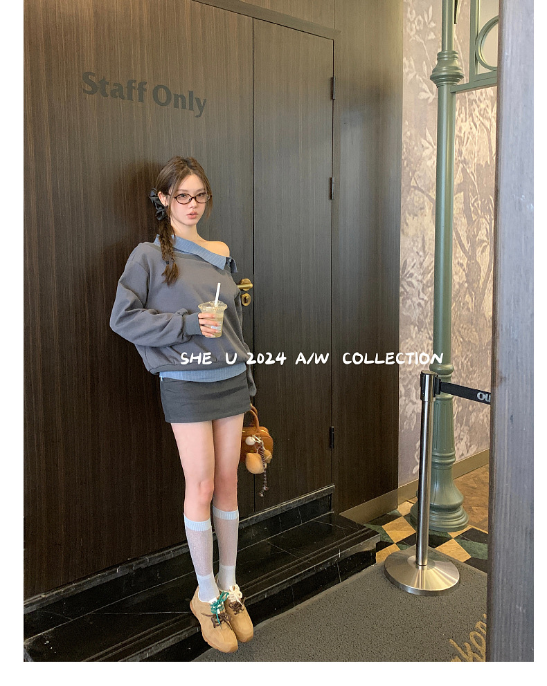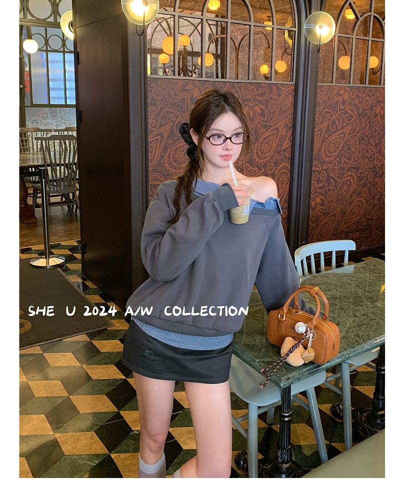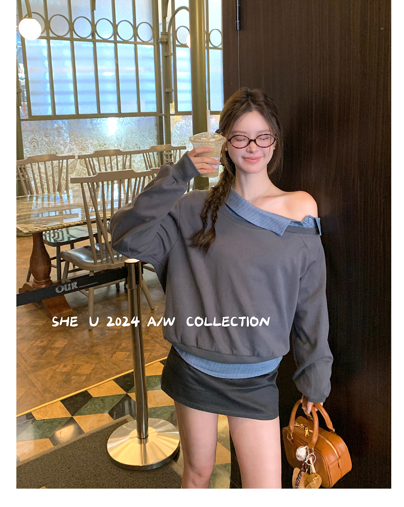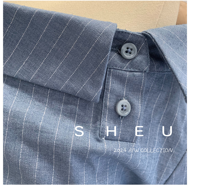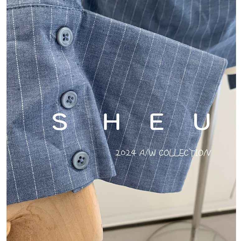 [재고] SHE U 틈새 디자인 비스듬한 어깨 줄무늬 셔츠 여성 2024 가을/겨울 한국 허리 어깨 탑스토어 가기