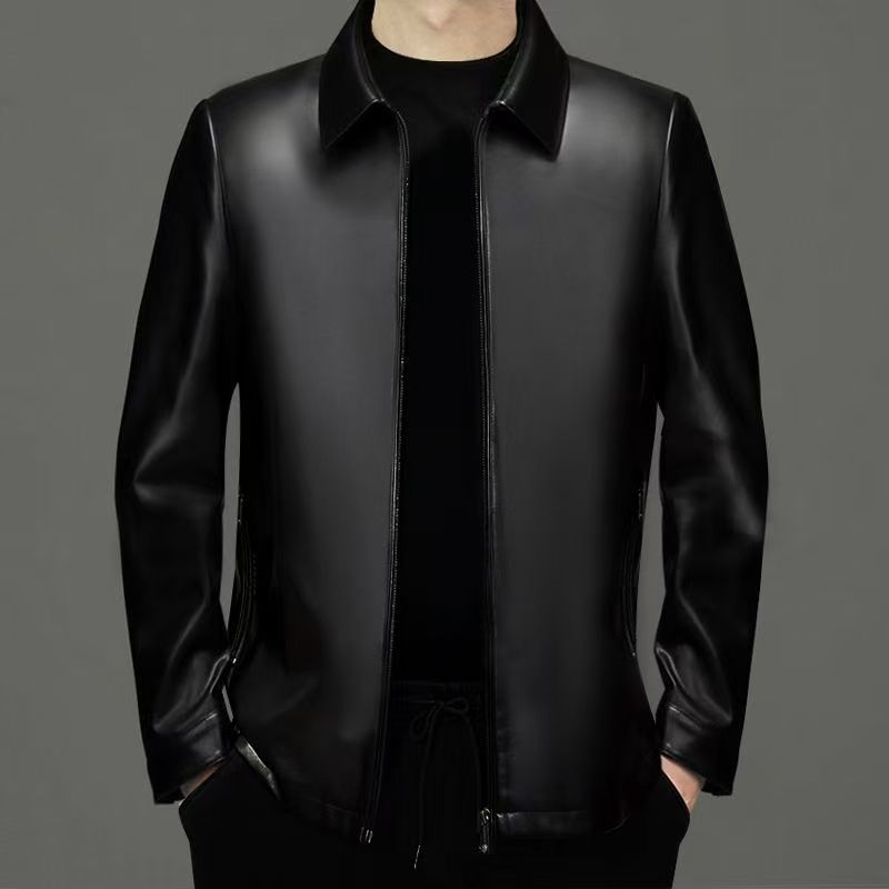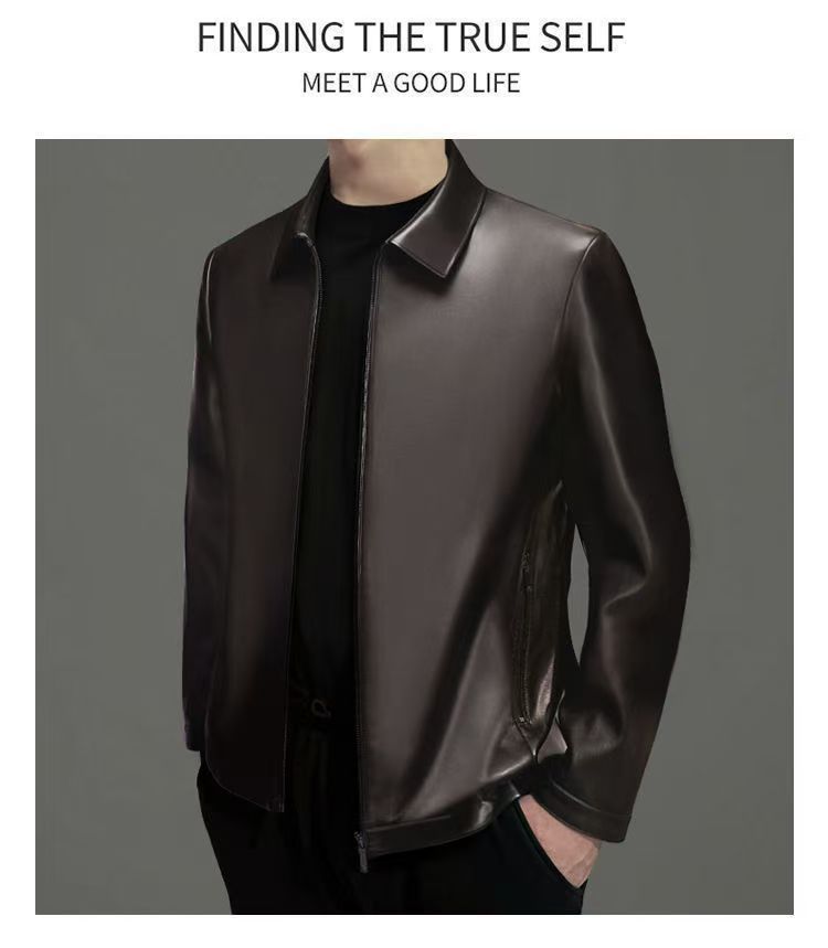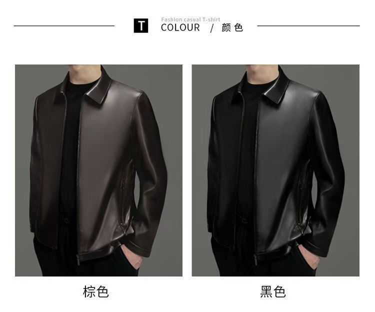 가죽 자켓 봄과 가을 얇은 남성 옷깃 가짜 양가죽 남성 자켓 기모 남성 순수 가죽 자켓 아빠의 옷스토어 가기
