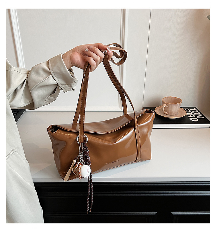 오일 왁스 가죽 한국 스타일 간단한 INS 플립 커버 언더암 가방 디자인 센스 캐주얼 올 매치 숄더 백 대용량 토트 백