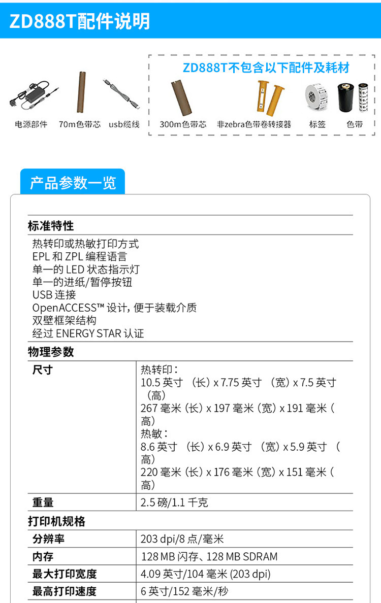 • ZD888T(GK888T 업그레이드 모델)는 70m 리본을 사용합니다.
