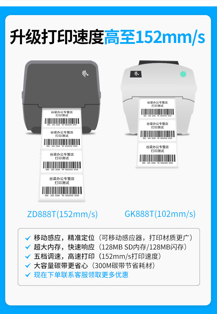 Zebra ZD888 바코드 프린터 GK888T 접착 라벨 종이 특급 전자 단일 열스토어 가기