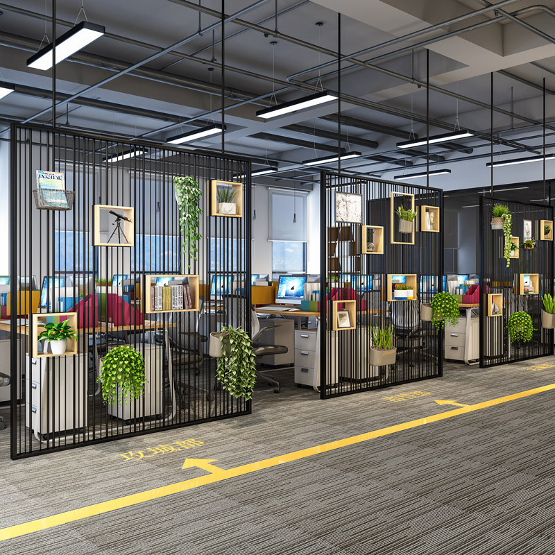 사무실 철 스크린 간단한 창조적 인 거실 바 레스토랑 입구 산업 스타일 녹색 식물 장식 파티션 울타리