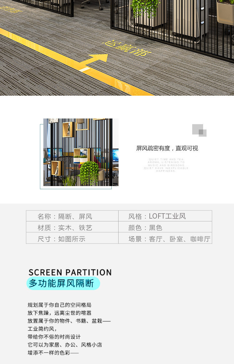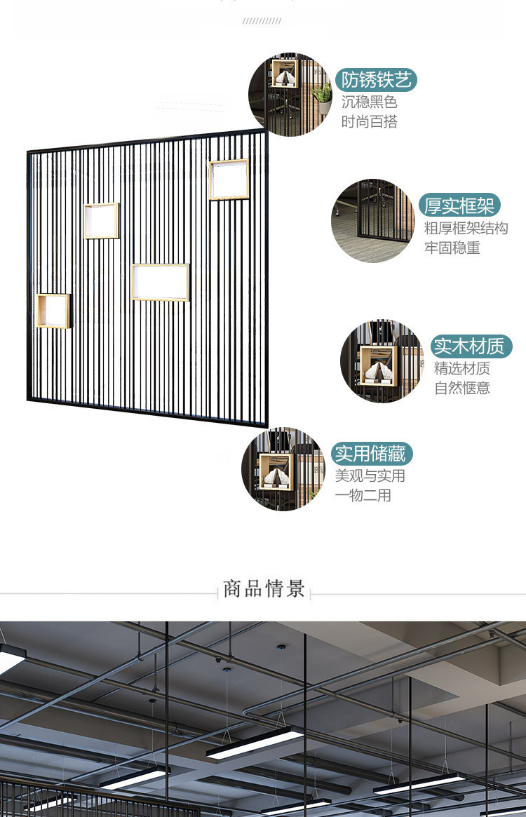 工业风铁艺复古隔断置物架办公室餐厅屏风展示书架格子实木盒