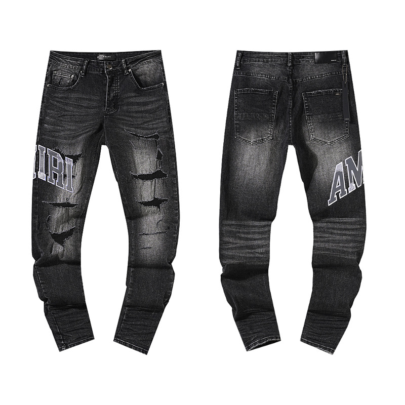 국경 간 무역 도매 트렌디 브랜드 미국 하이 스트리트 스타일 빈티지 패치워크 스트레이트 레그 데님 팬츠 남성용스토어 가기