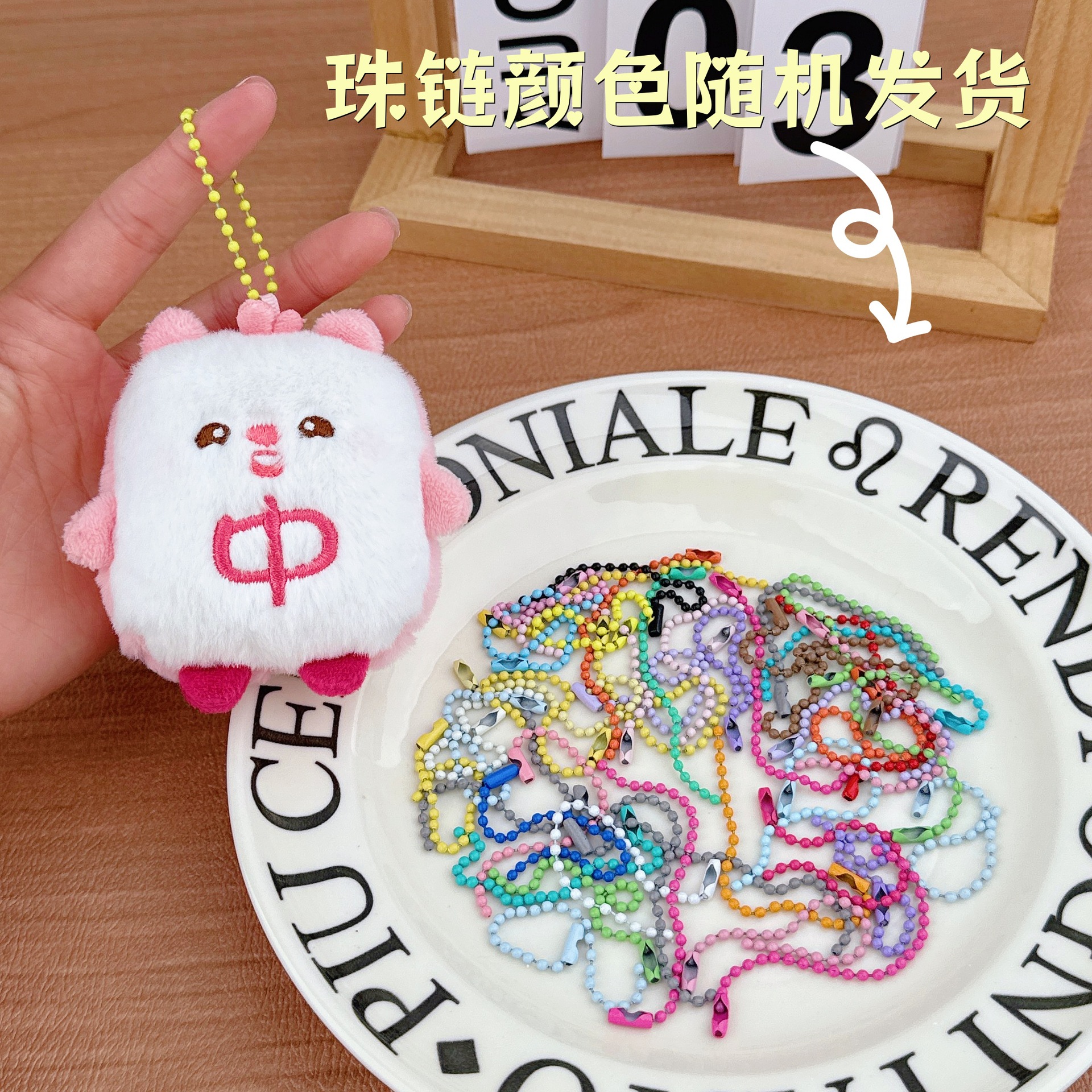 • 핑크색 중간 사이즈 + 랜덤 색상 구슬 체인 1개