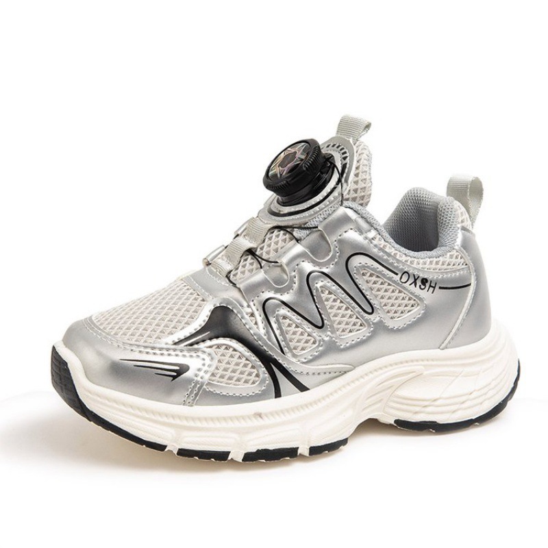 어린이 버튼 신발 두꺼운 바닥 빛 더블 메쉬 중 큰 어린이 캐주얼 신발 2024 가을 새로운 운동화 소년 소녀 달리기 신발