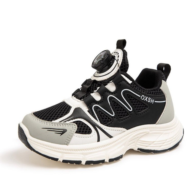 어린이 버튼 신발 두꺼운 바닥 빛 더블 메쉬 중 큰 어린이 캐주얼 신발 2024 가을 새로운 운동화 소년 소녀 달리기 신발스토어 가기