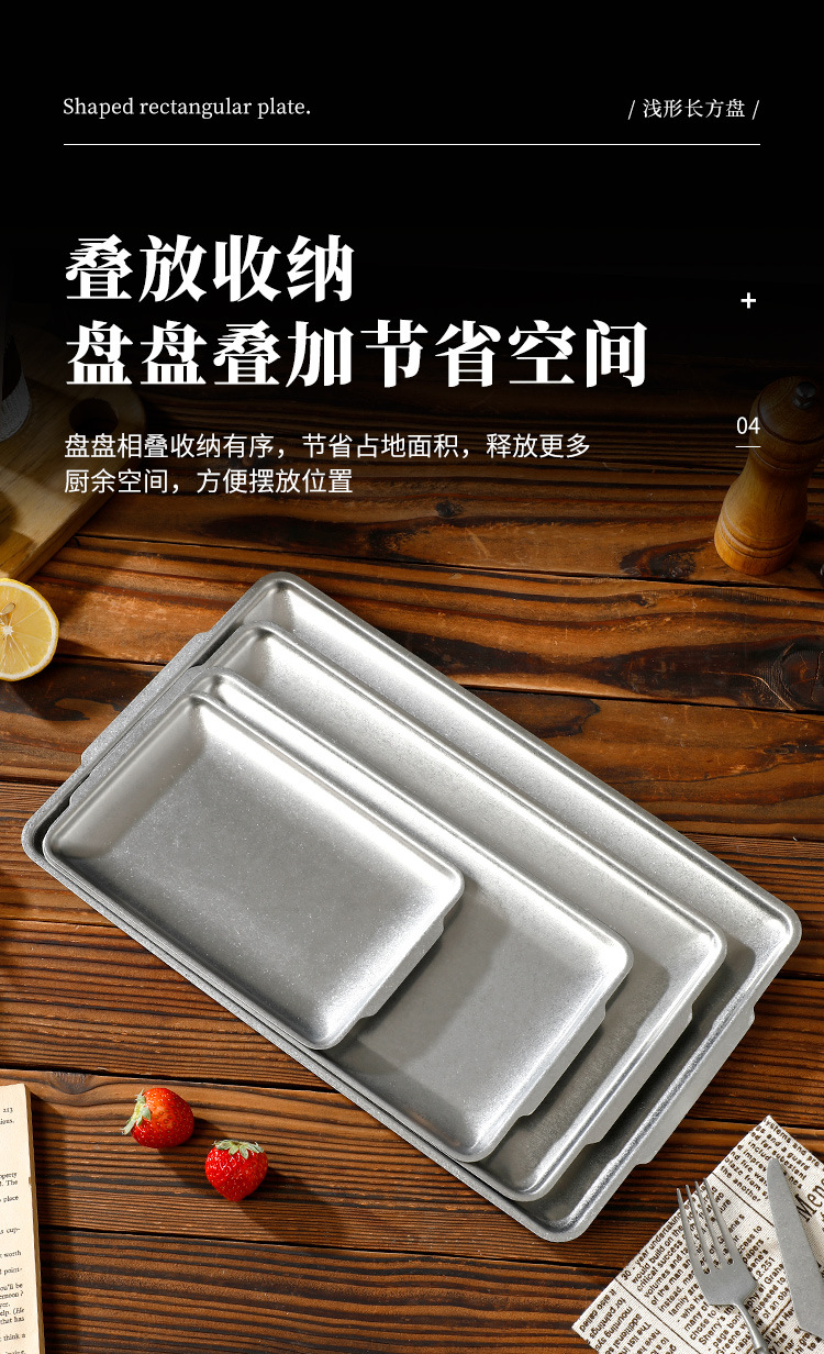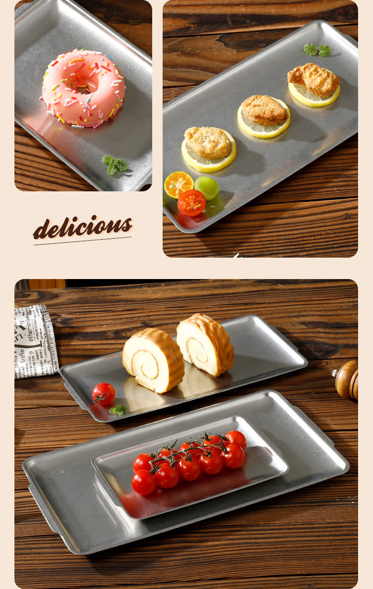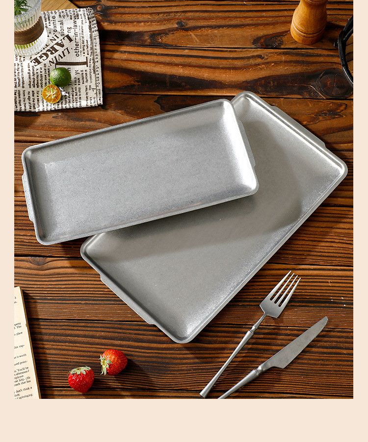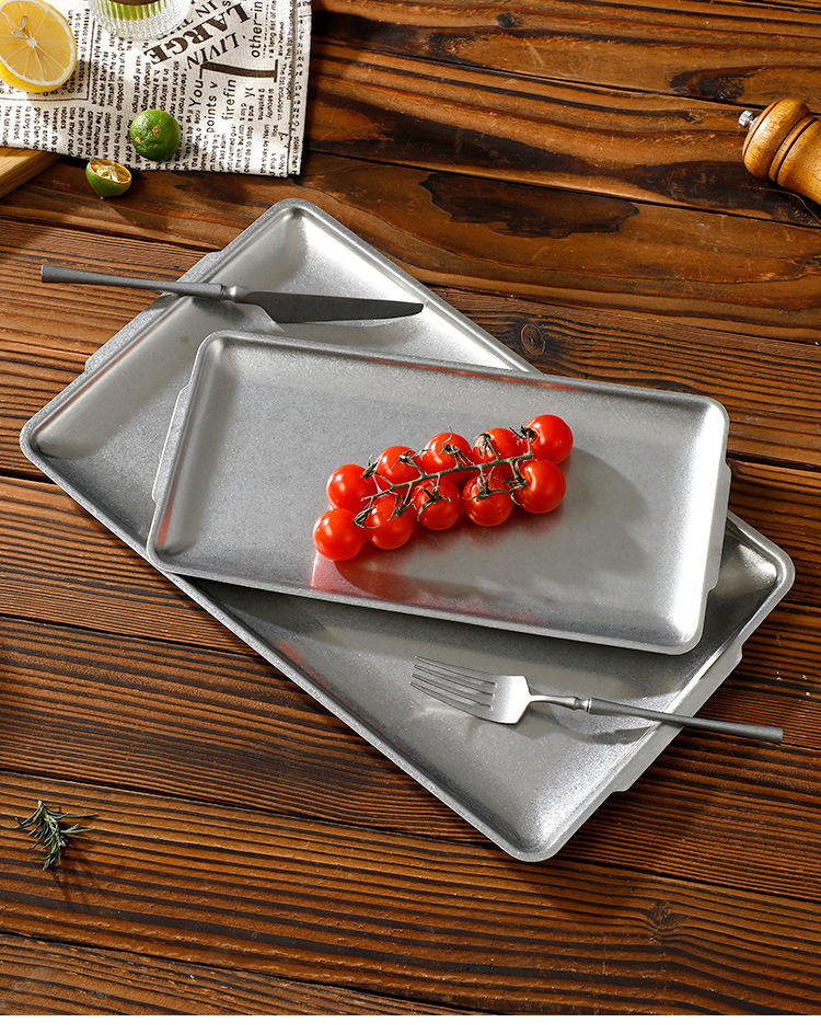 빈티지 식기 스테인레스 스틸 트레이 직사각형 골동품 얕은 트레이 산업 스타일 저장 트레이 바베큐 트레이 과일 디저트 트레이
