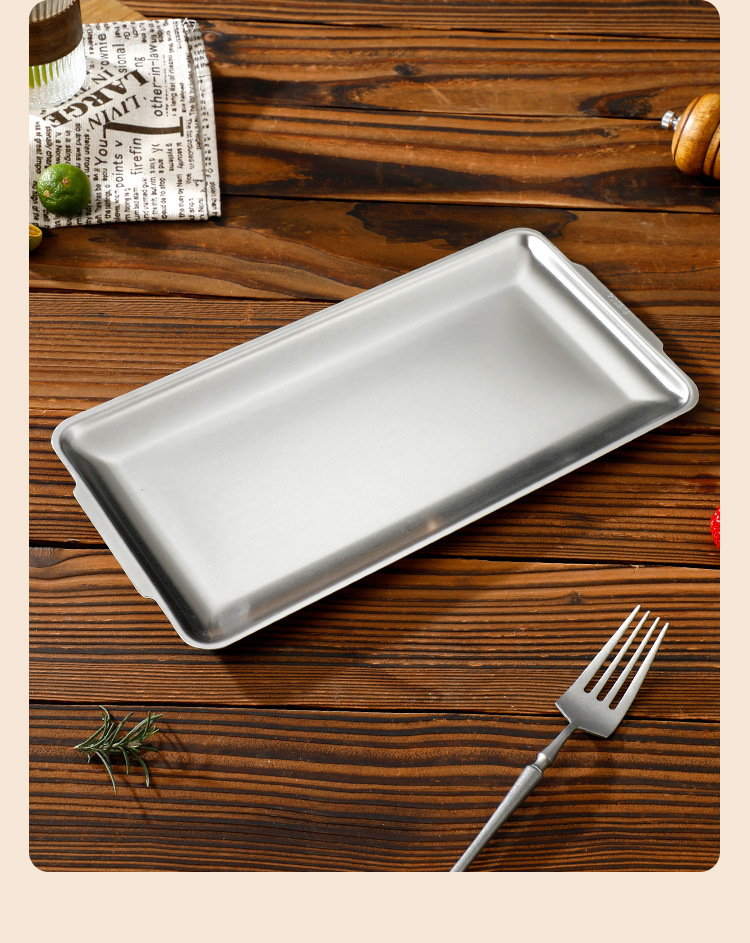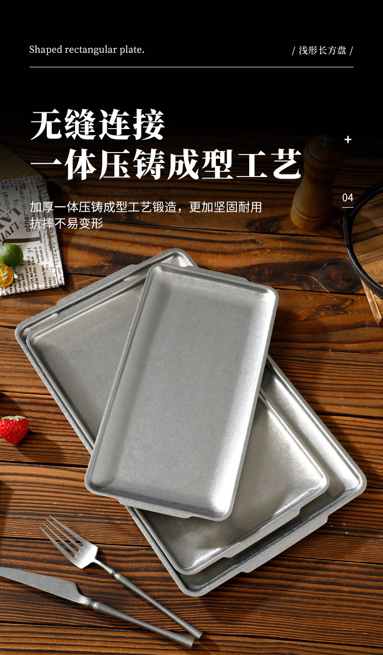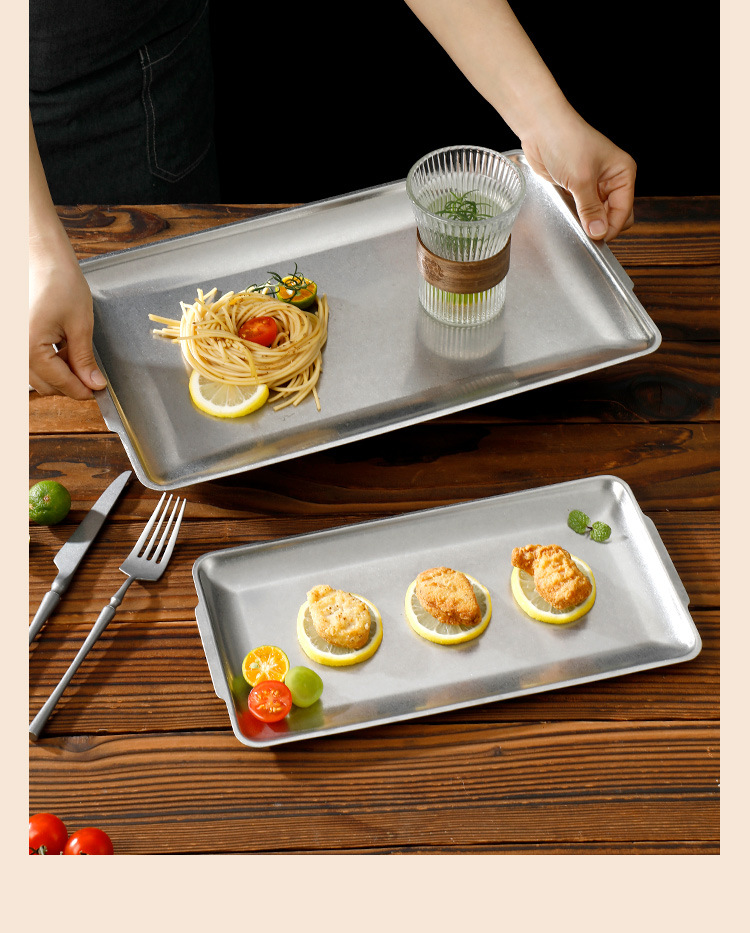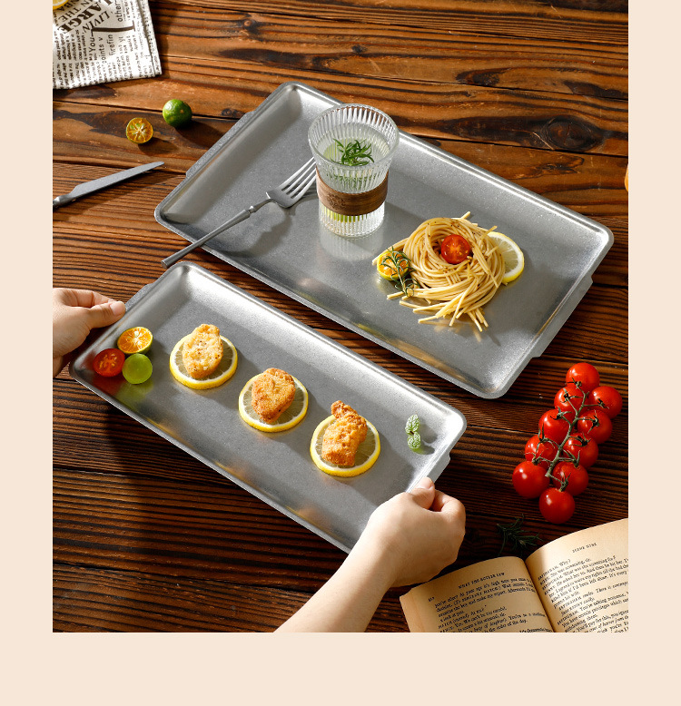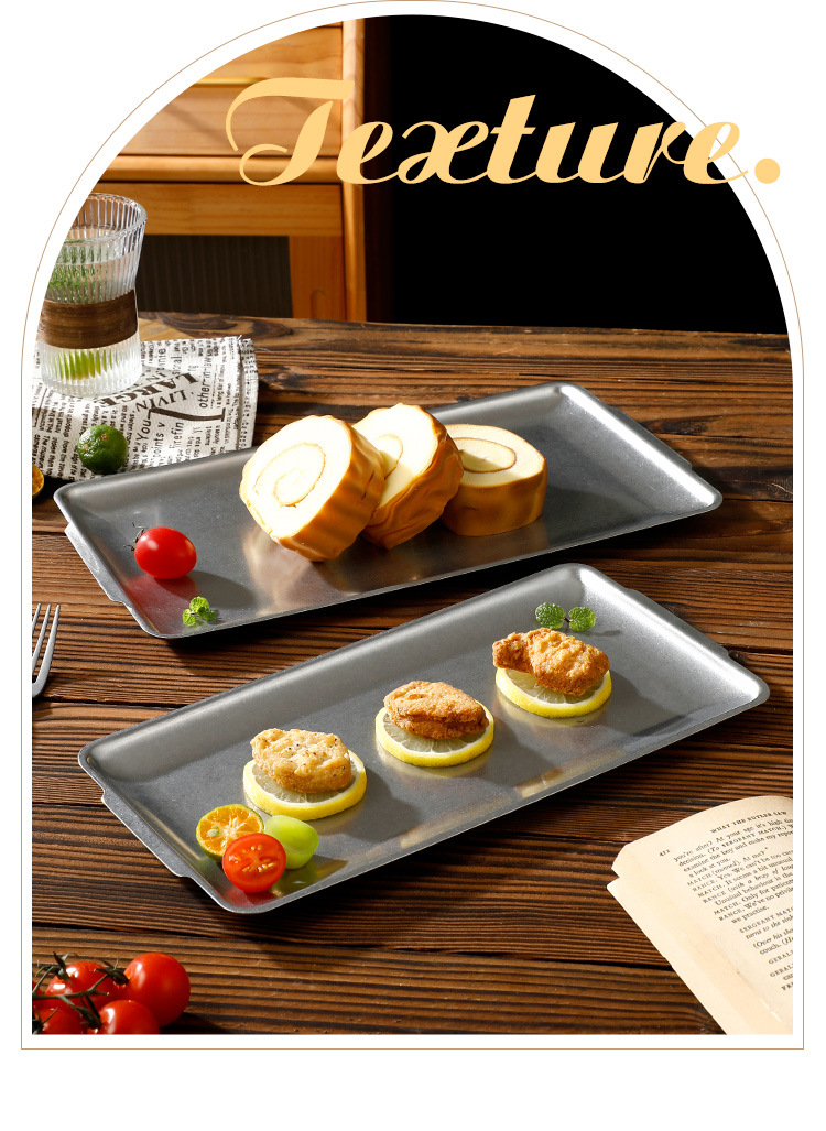 빈티지 식기 스테인레스 스틸 트레이 직사각형 골동품 얕은 트레이 산업 스타일 저장 트레이 바베큐 트레이 과일 디저트 트레이