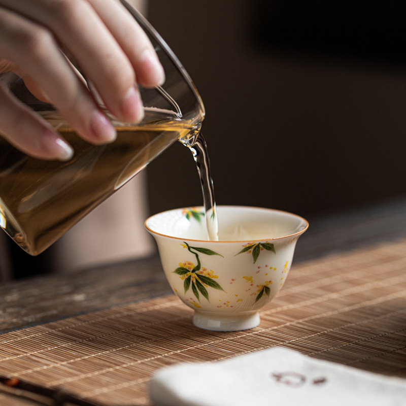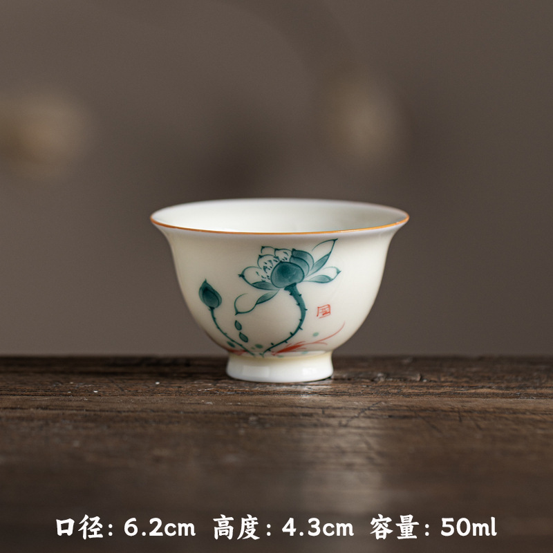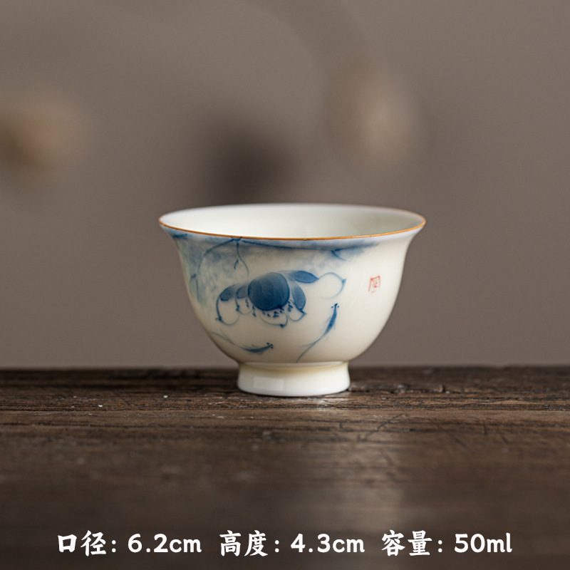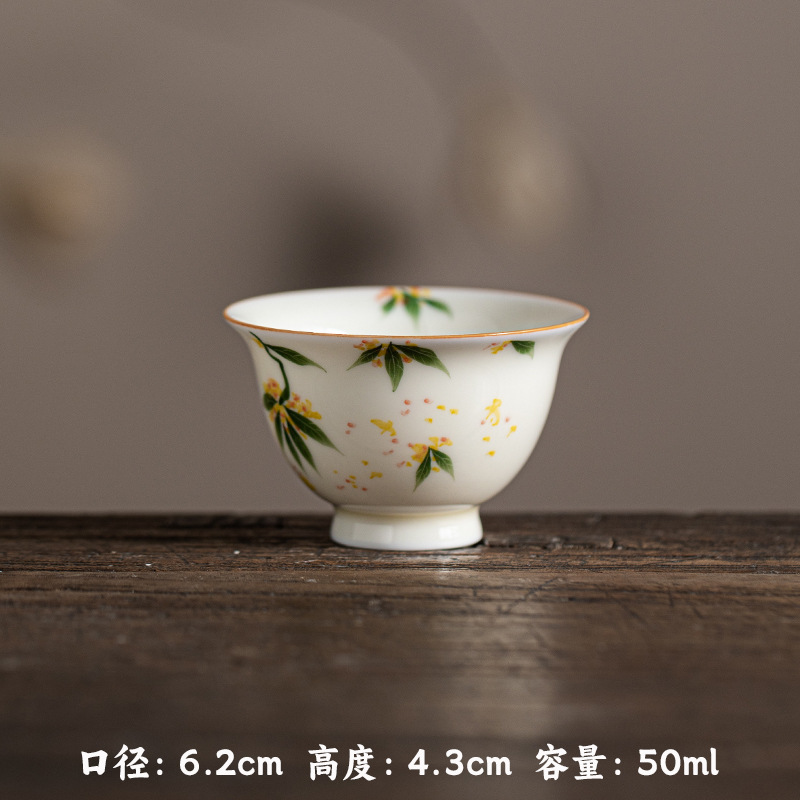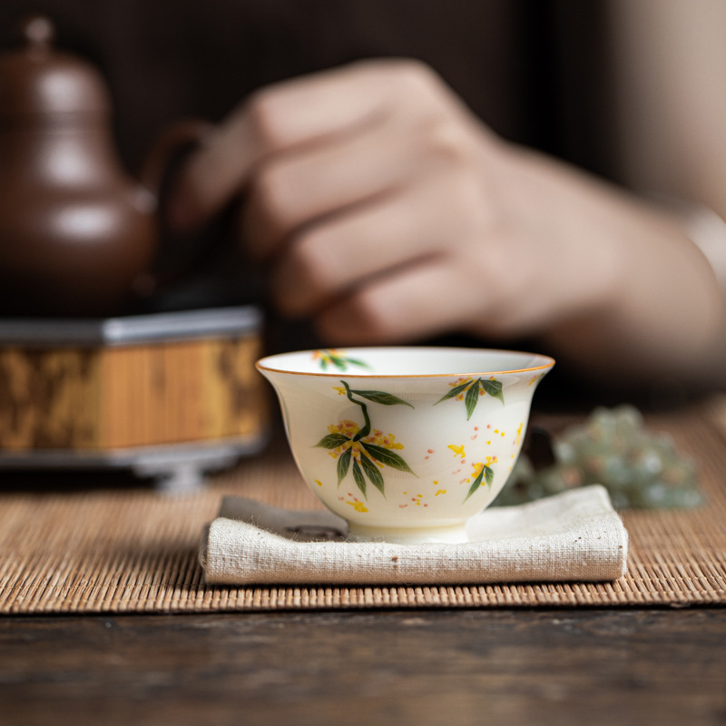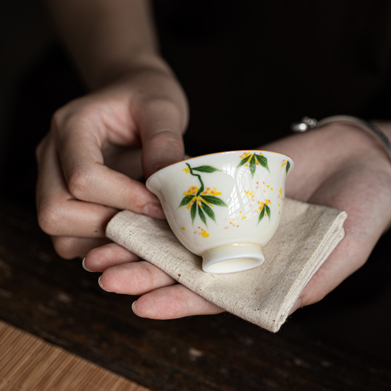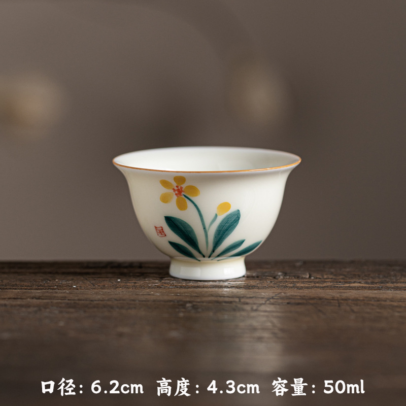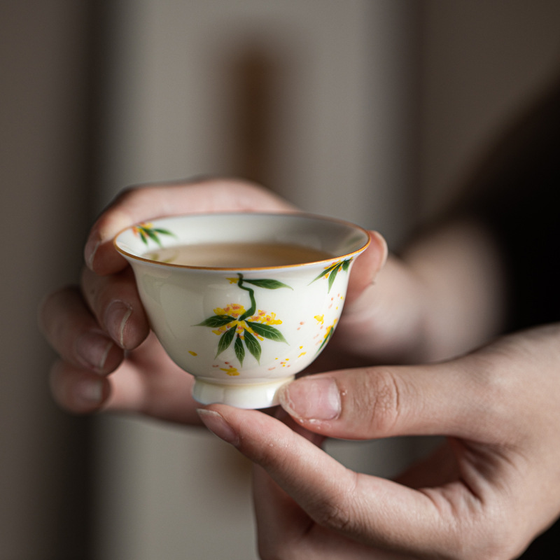 허니 옐로우 유약 손으로 그린 작은 프레스 핸드 컵 언더 유약 컬러 손으로 만든 연꽃 Osmanthus 감 세라믹 티 컵 가정용 차 시음 컵스토어 가기