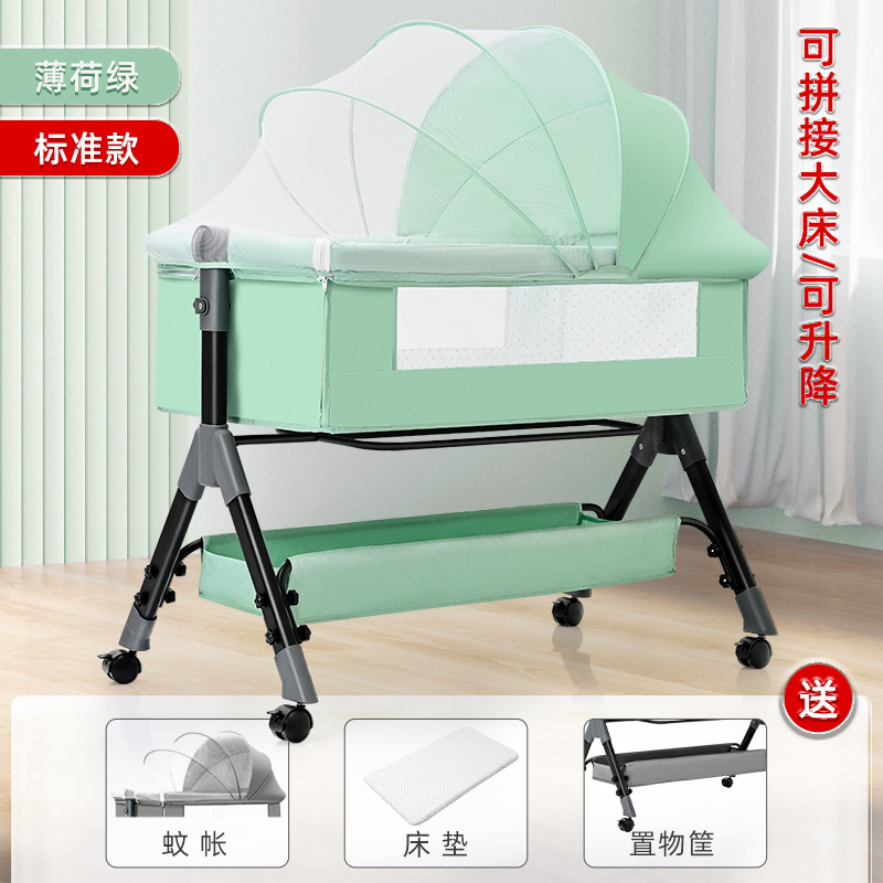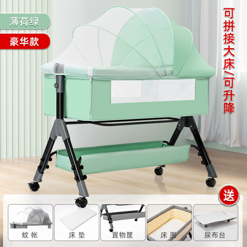 使用产品时,确保家长在旁看护,避免宝宝好动导致床体滑动或倾倒,宝宝爬出等危险动作。带有尿布台的更需要看护好。