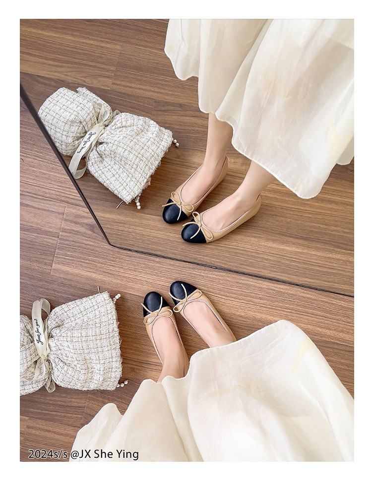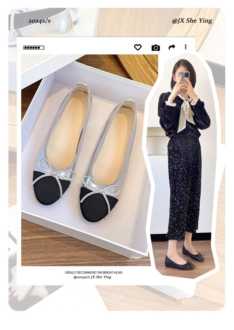 재고 샤넬 스타일 활 발레 신발 통근 직장 올매치 컬러 매칭 높이 증가 플랫 신발 여성 신발스토어 가기