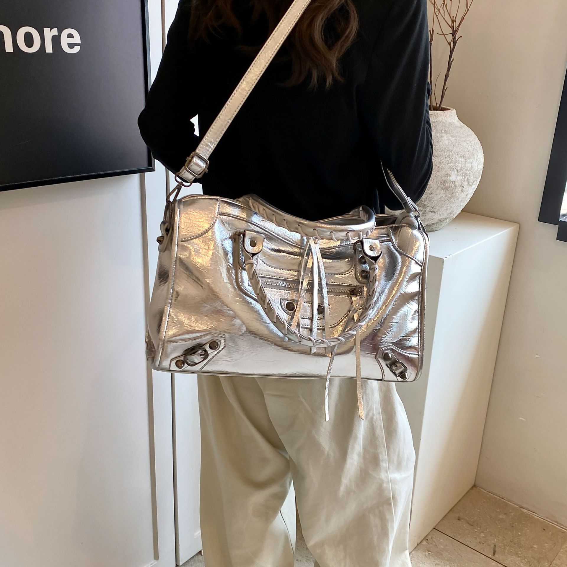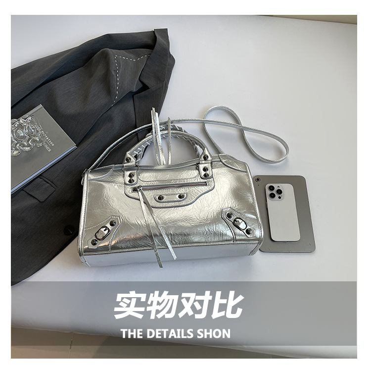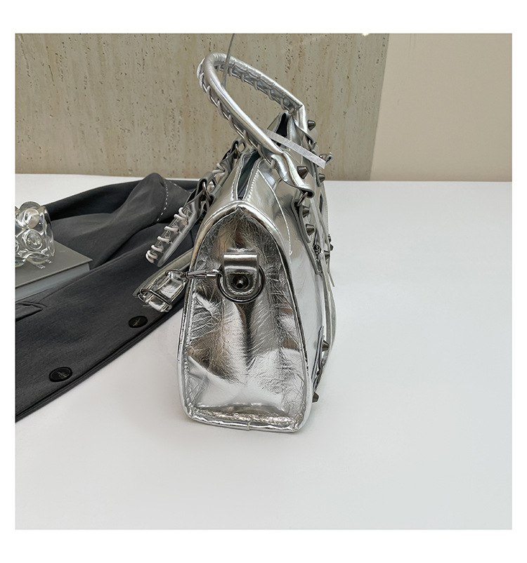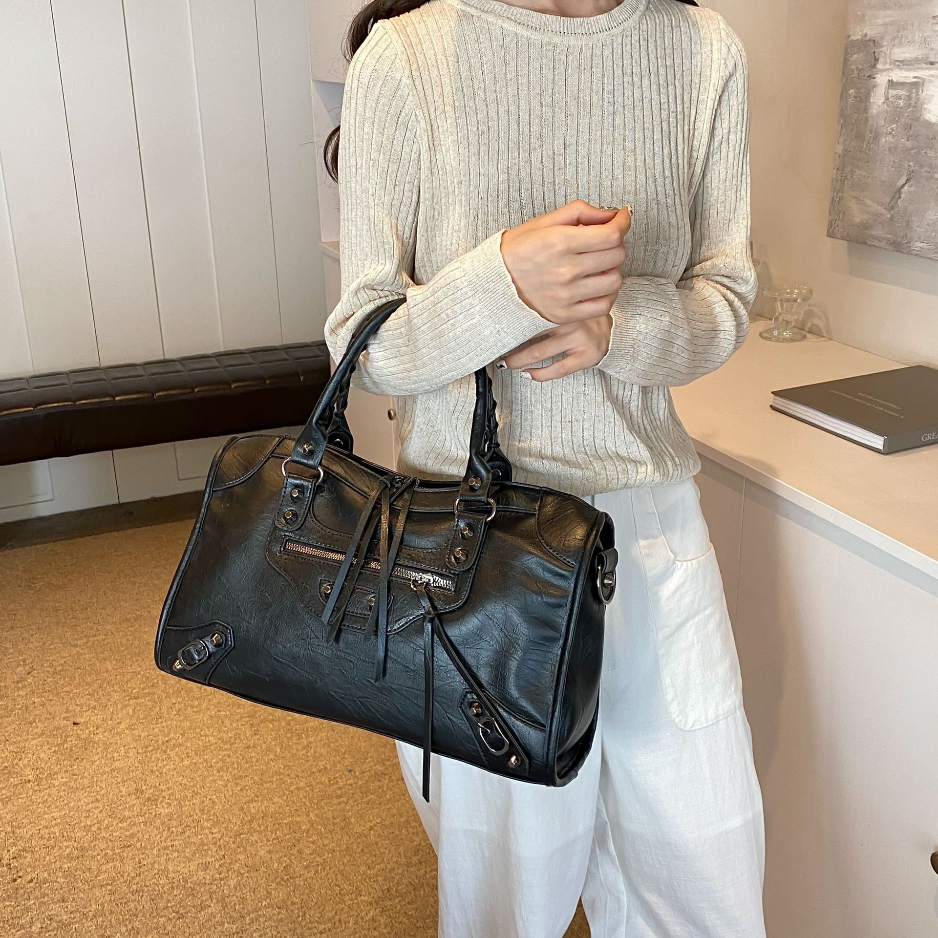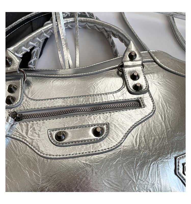 국경 간 올매치 틈새 트렌디 리벳 바이커 백 2024 새로운 하이 엔드 센스 대용량 어깨 크로스 바디 핸드백