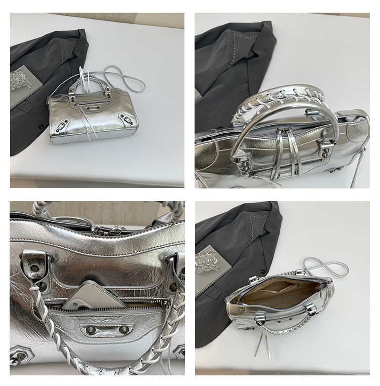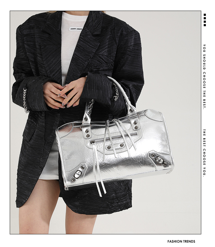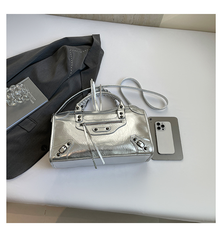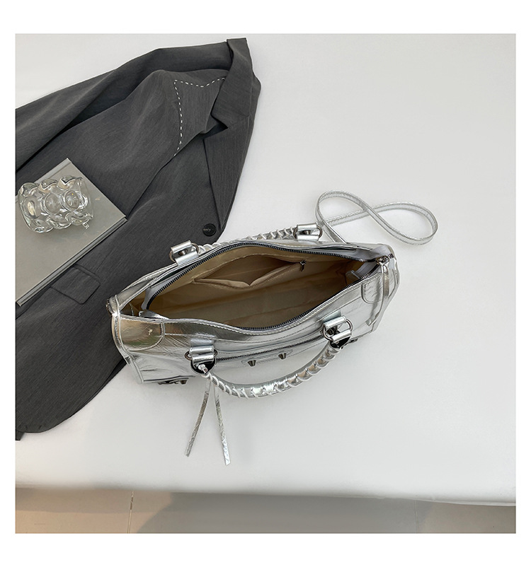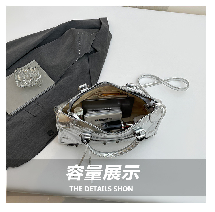국경 간 올매치 틈새 트렌디 리벳 바이커 백 2024 새로운 하이 엔드 센스 대용량 어깨 크로스 바디 핸드백