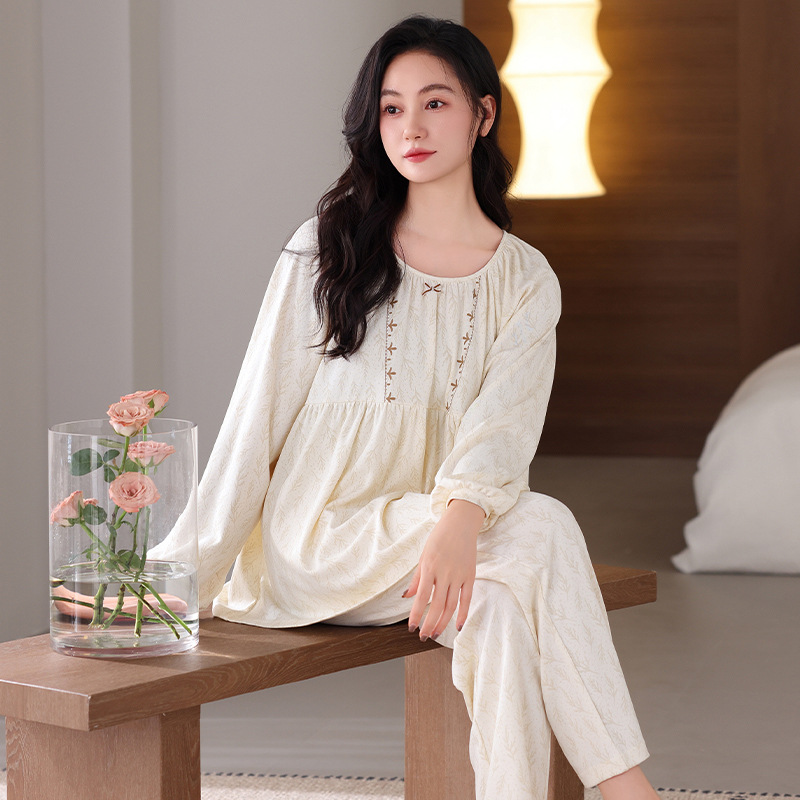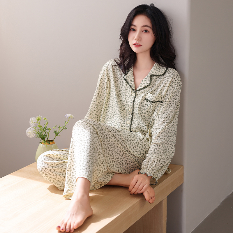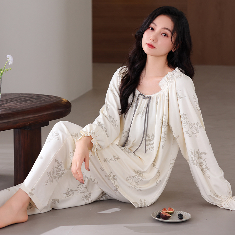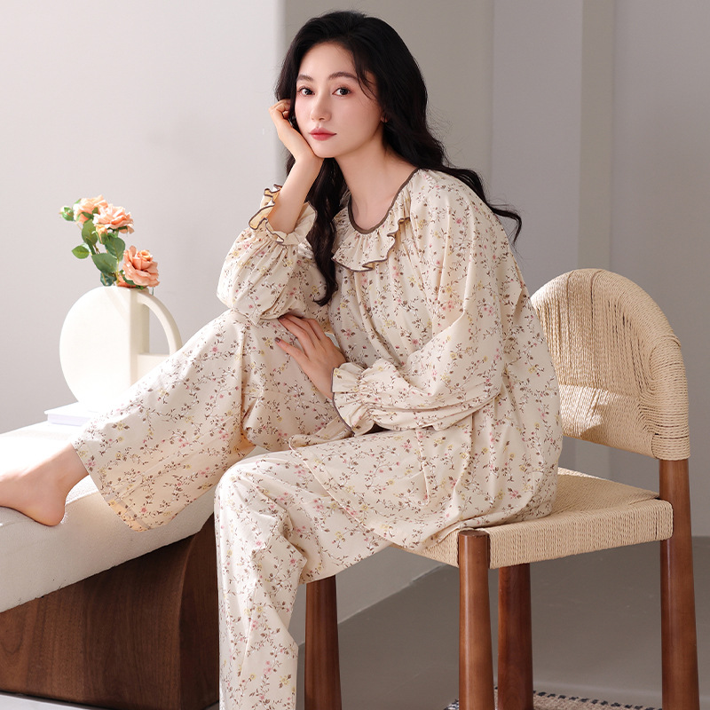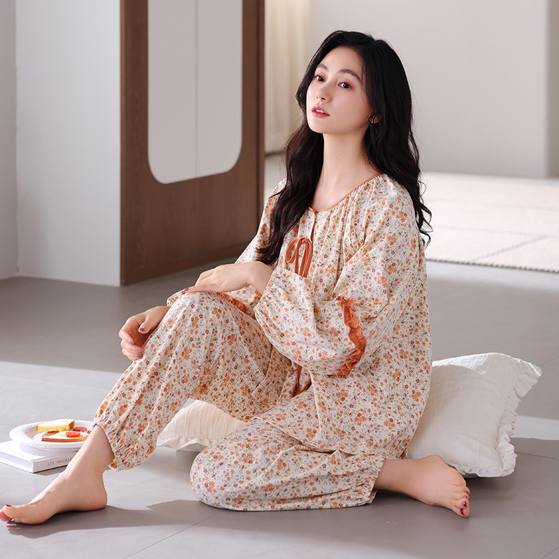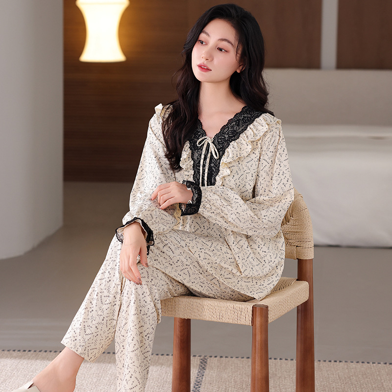 궁전 스타일 잠옷 여성의 봄과 가을 긴 소매 여성의 달콤한 소녀 의상 유행 퓨어 코튼 풀 랙 홈 옷