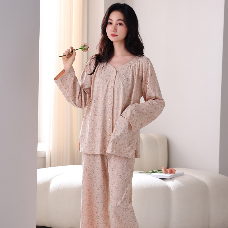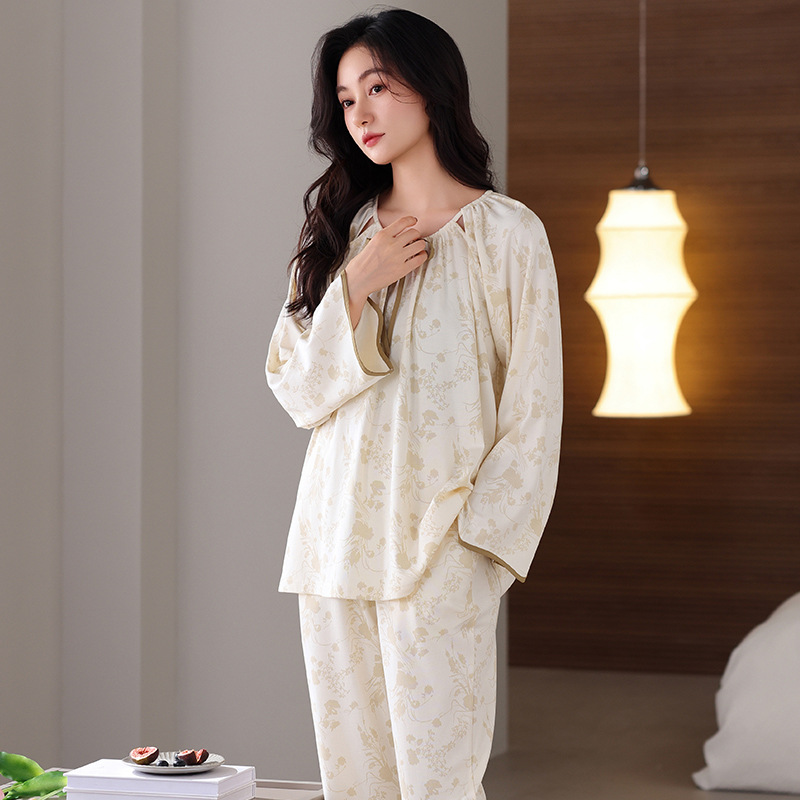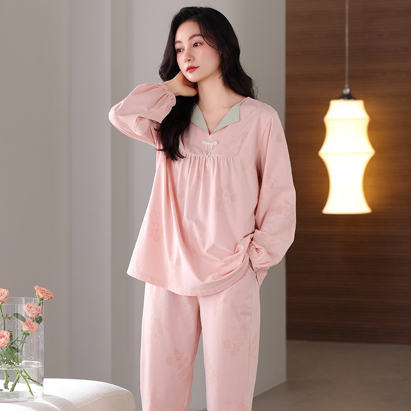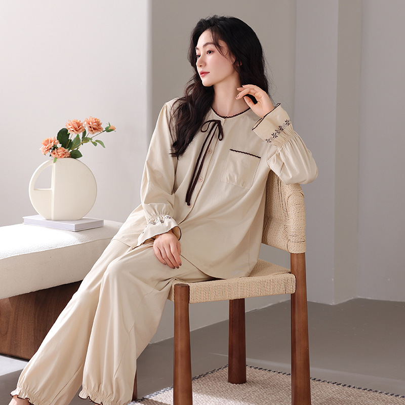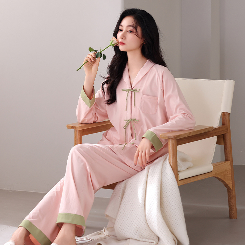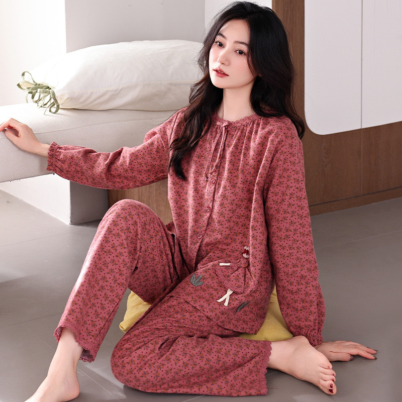 궁전 스타일 잠옷 여성의 봄과 가을 긴 소매 여성의 달콤한 소녀 의상 유행 퓨어 코튼 풀 랙 홈 옷