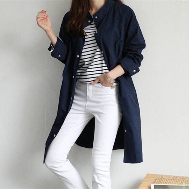 한국 스타일 싱글 버튼 슬림핏 슬릿 워크웨어 윈드브레이커 여성용 2026 가을 신상 쁘띠 사이즈 캐주얼 코튼 자켓 빅사이즈스토어 가기