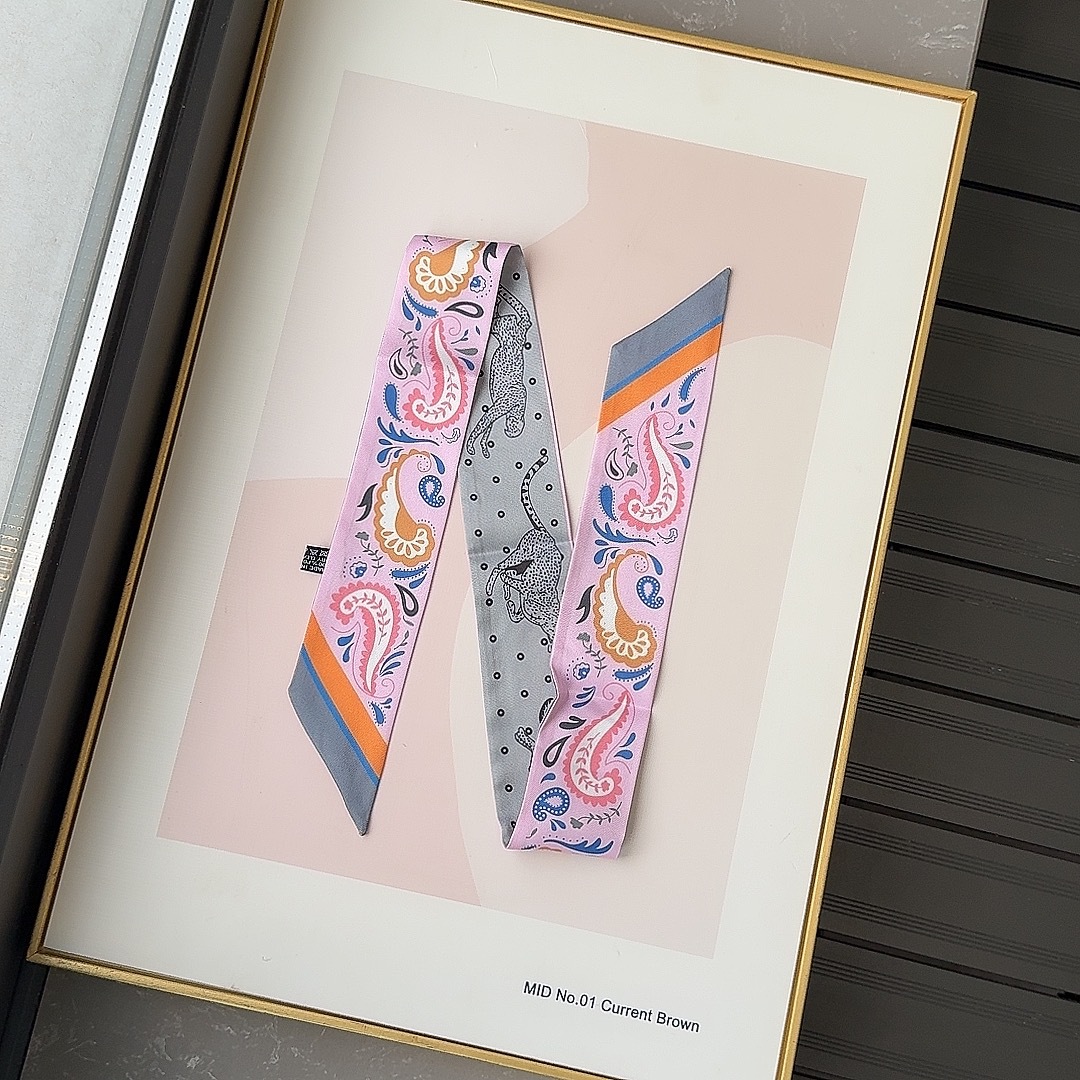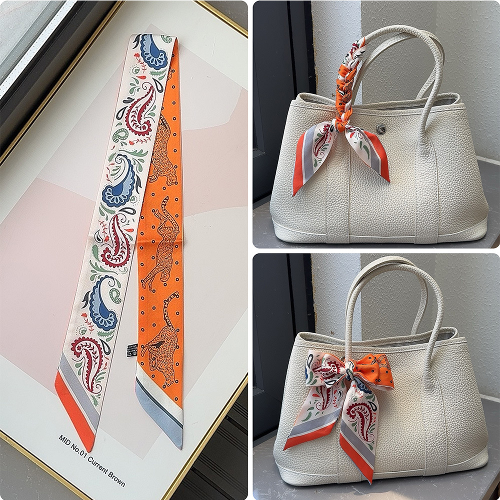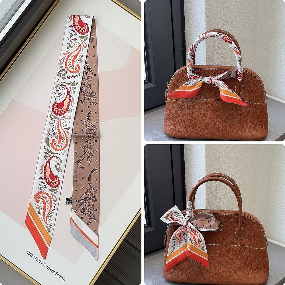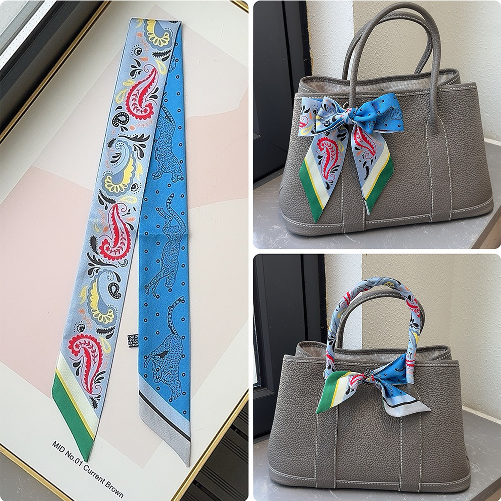 캐슈 인쇄 작은 리본 타이 백 핸들 실크 스카프 장식 가방 포장 벨트 실크 한국 동대문스토어 가기