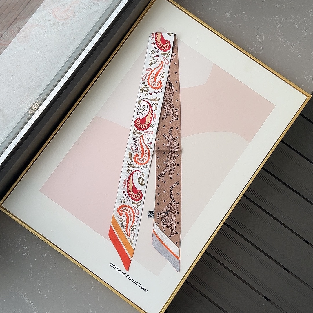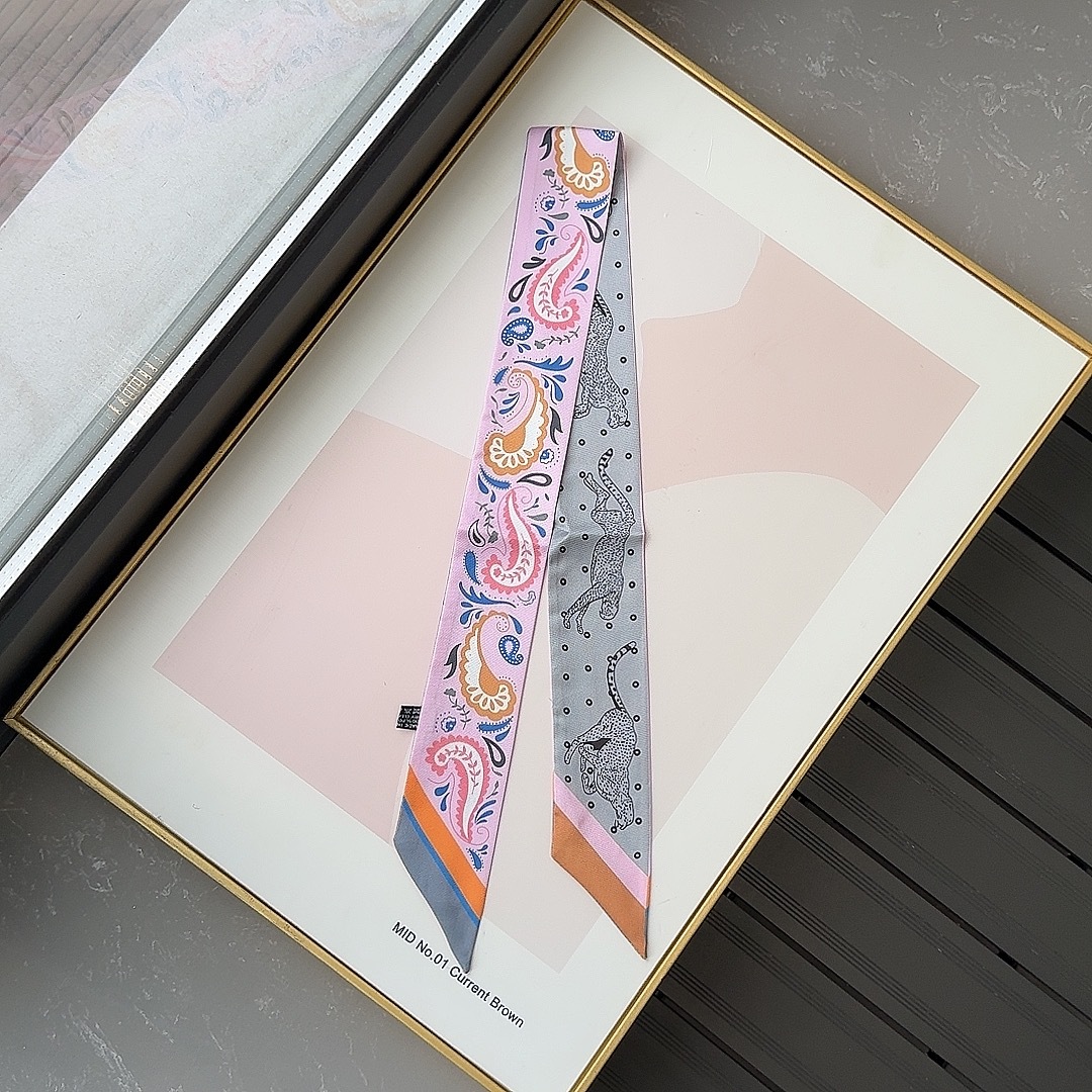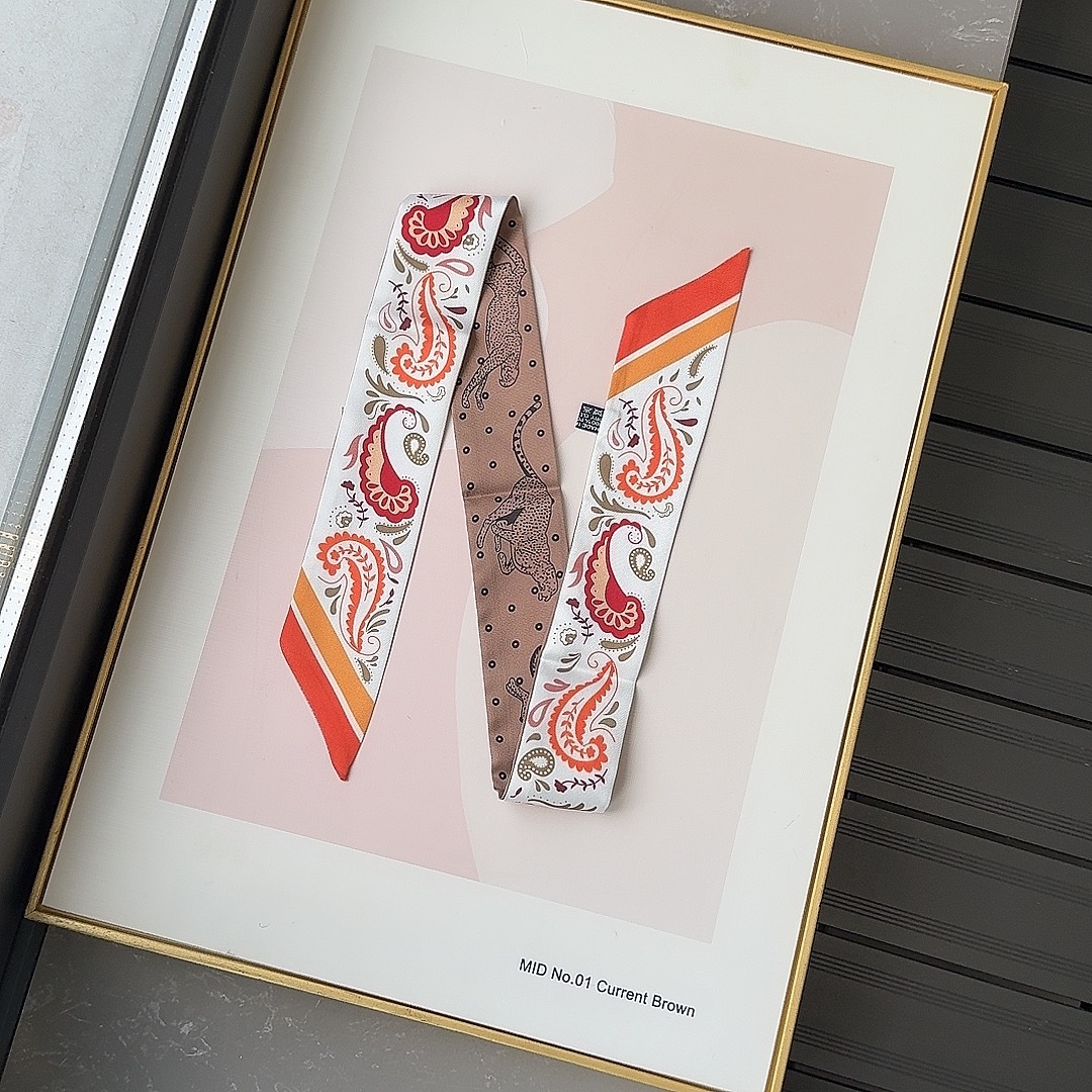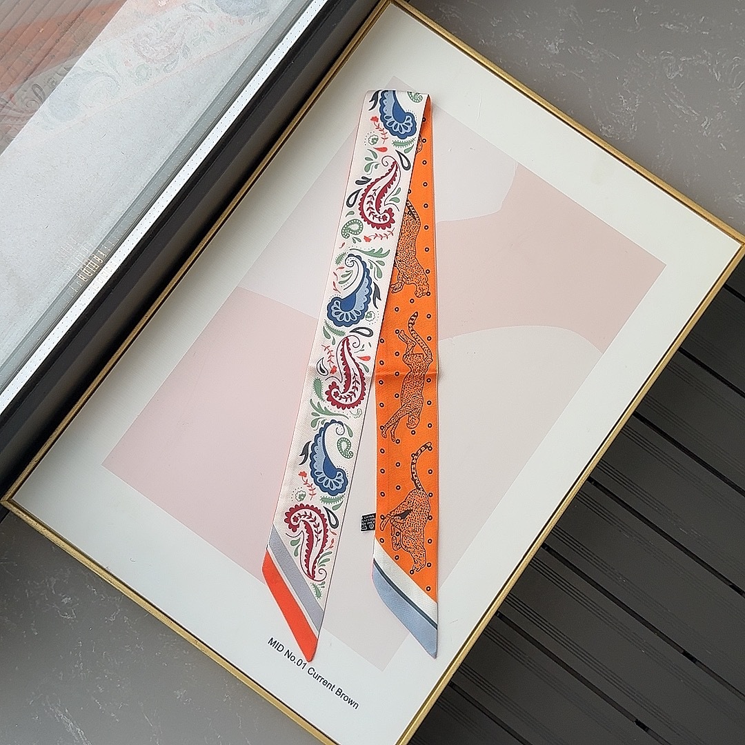 캐슈 인쇄 작은 리본 타이 백 핸들 실크 스카프 장식 가방 포장 벨트 실크 한국 동대문스토어 가기