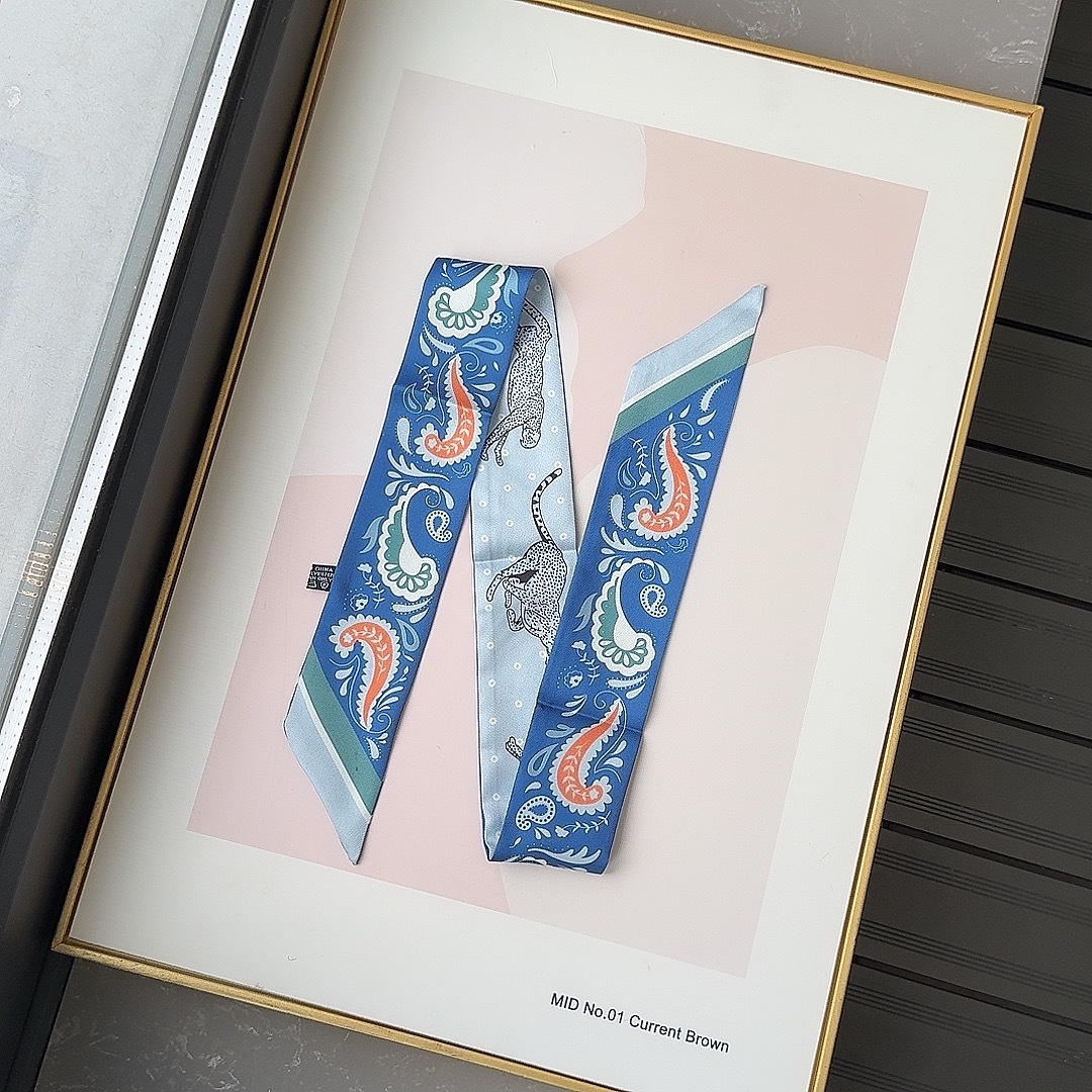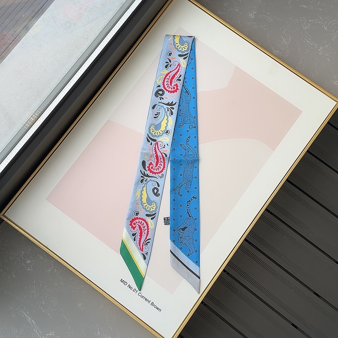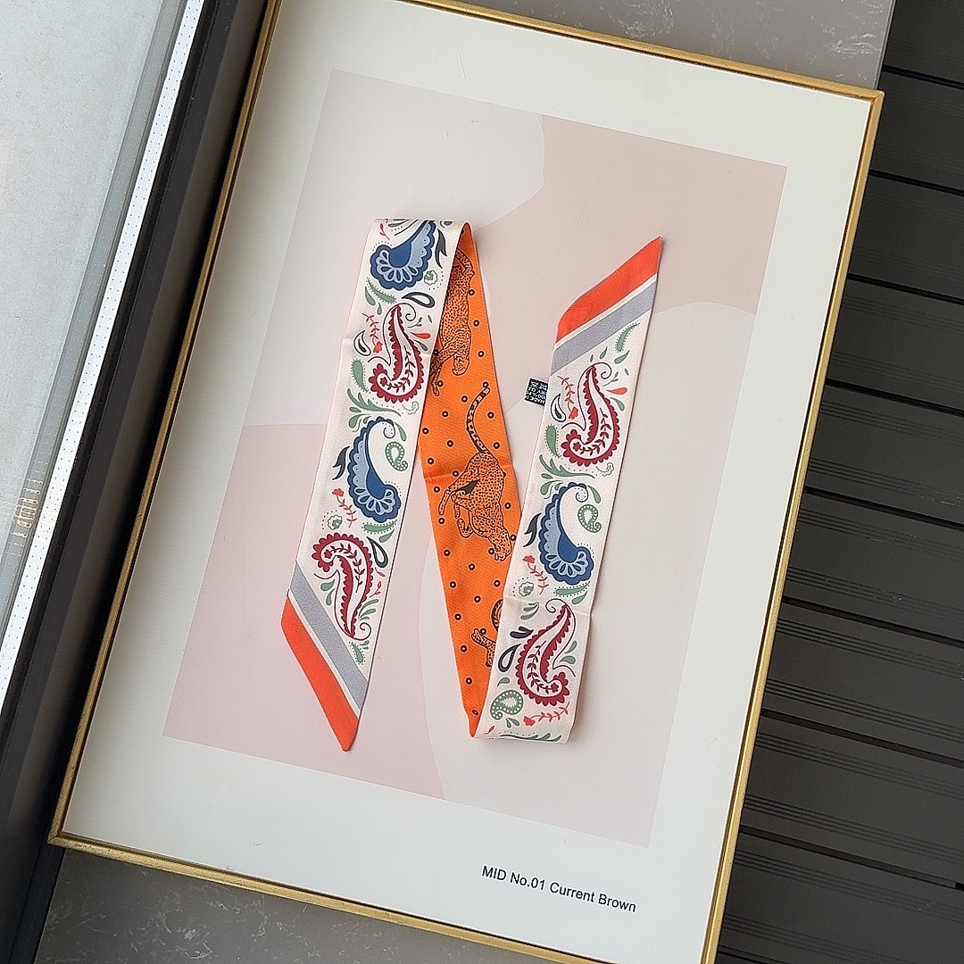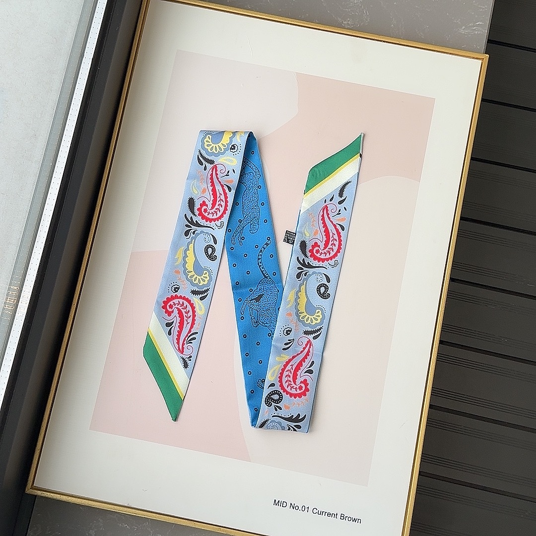 캐슈 인쇄 작은 리본 타이 백 핸들 실크 스카프 장식 가방 포장 벨트 실크 한국 동대문스토어 가기
