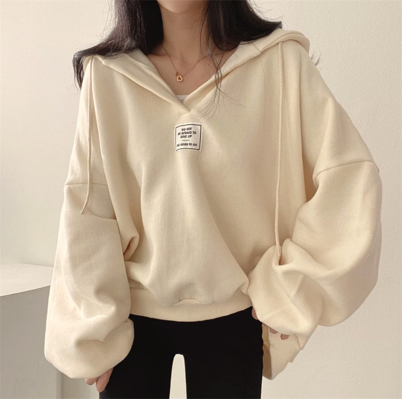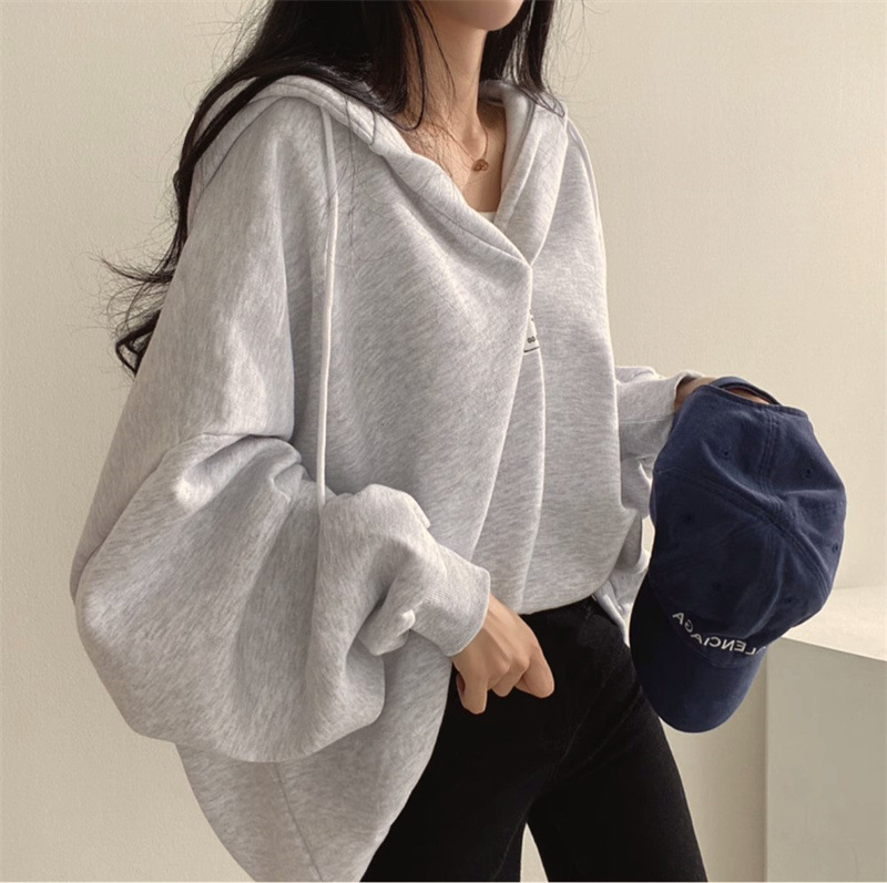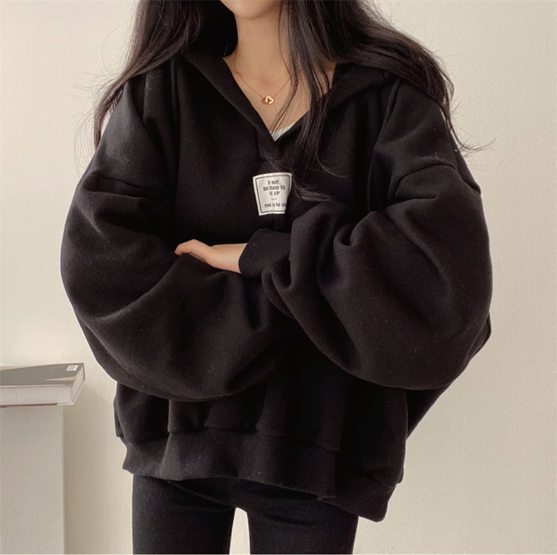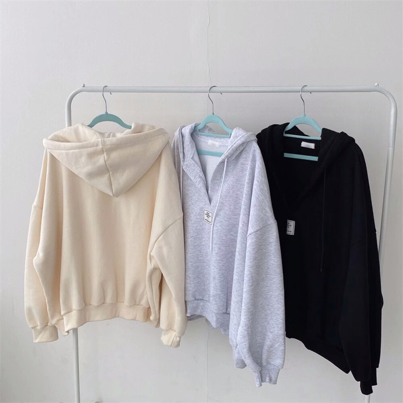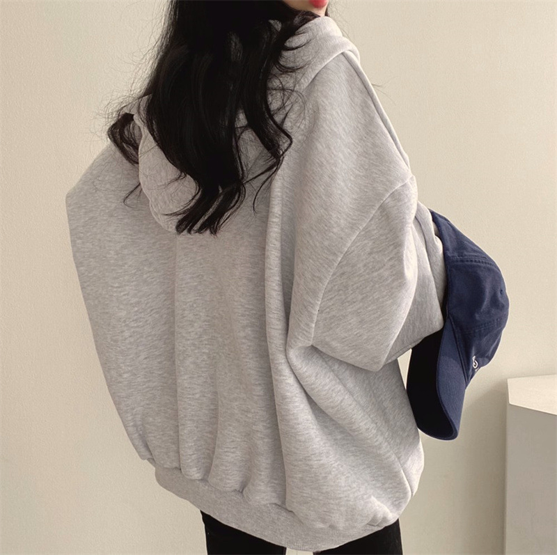 Y2K 국경 유럽 및 미국 플러스 사이즈 느슨한 여성 후드 V 넥 스웨트 셔츠 봄과 가을 한국식 올 매치 얇은 재킷스토어 가기