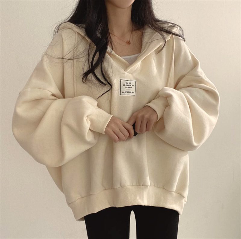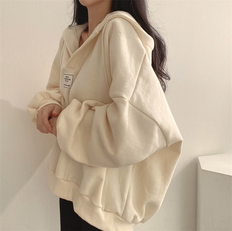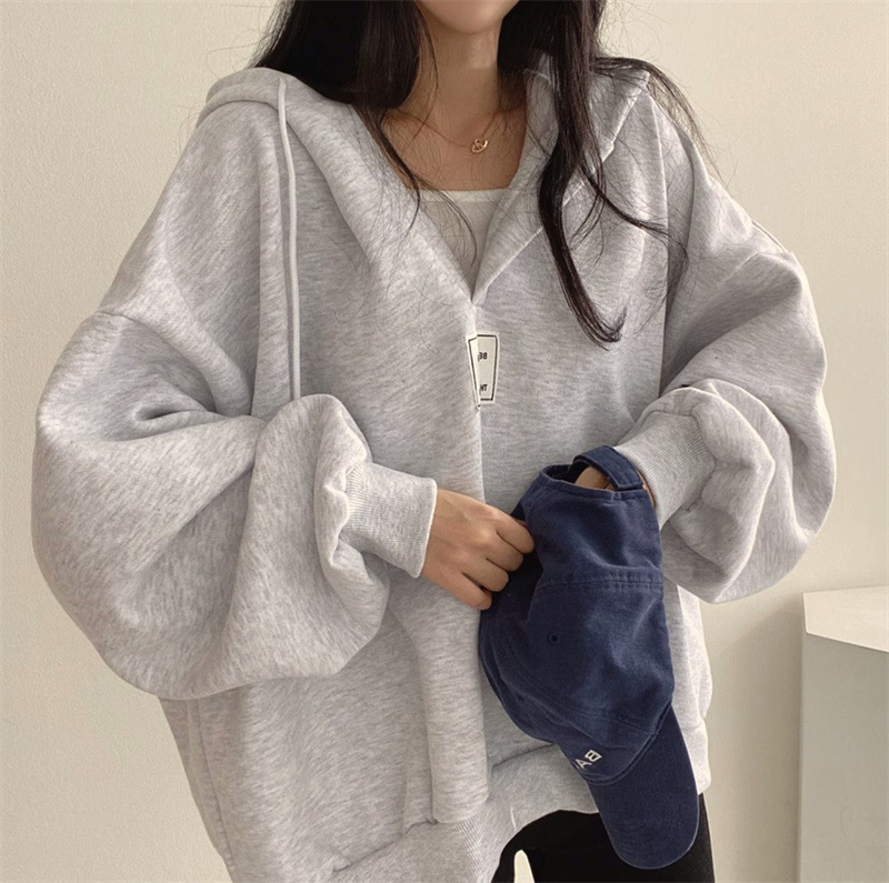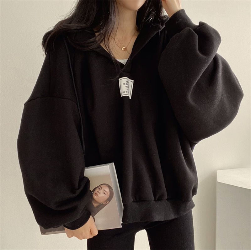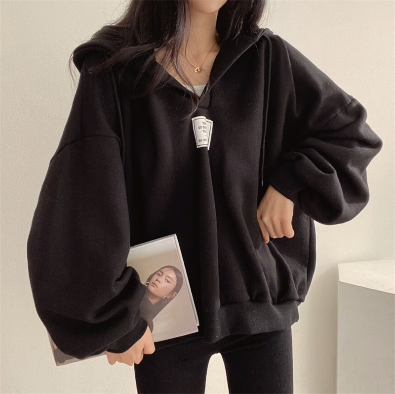 Y2K 국경 유럽 및 미국 플러스 사이즈 느슨한 여성 후드 V 넥 스웨트 셔츠 봄과 가을 한국식 올 매치 얇은 재킷스토어 가기