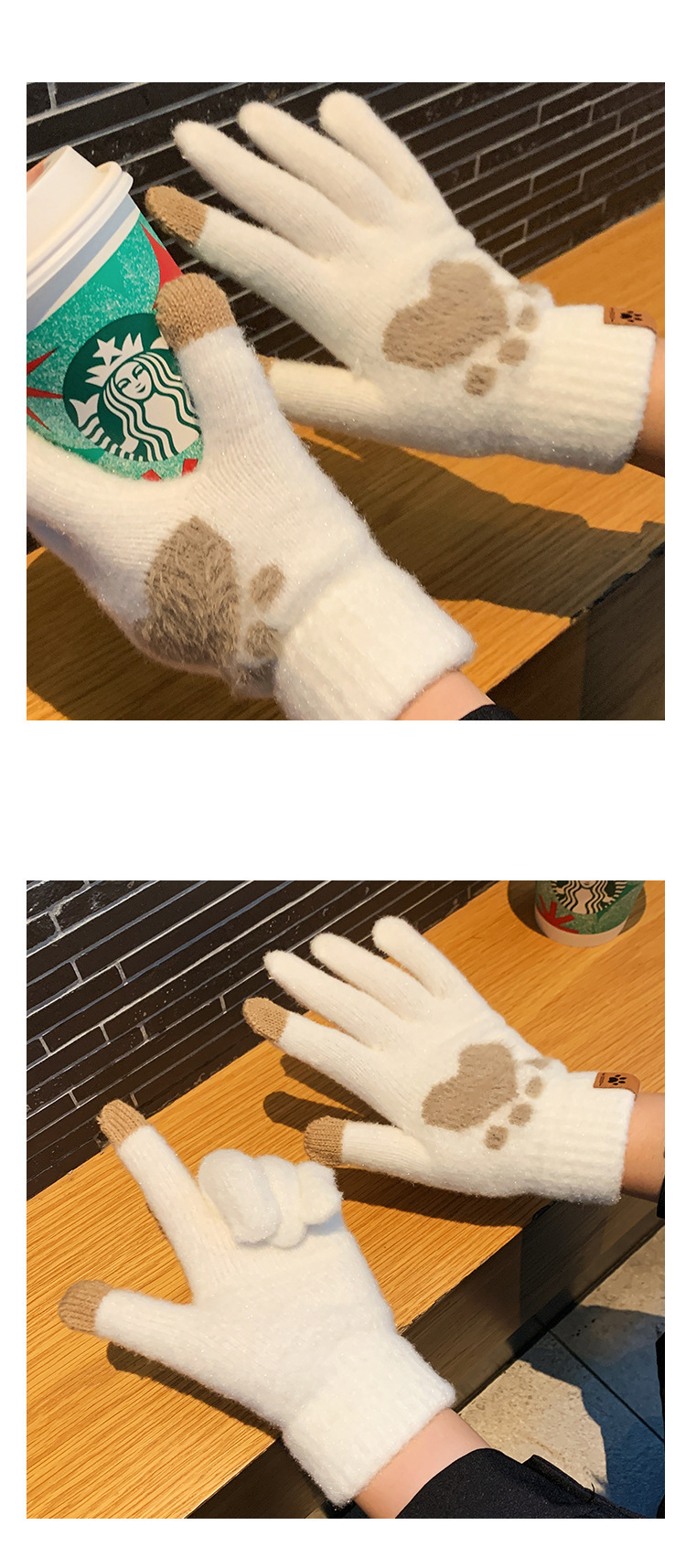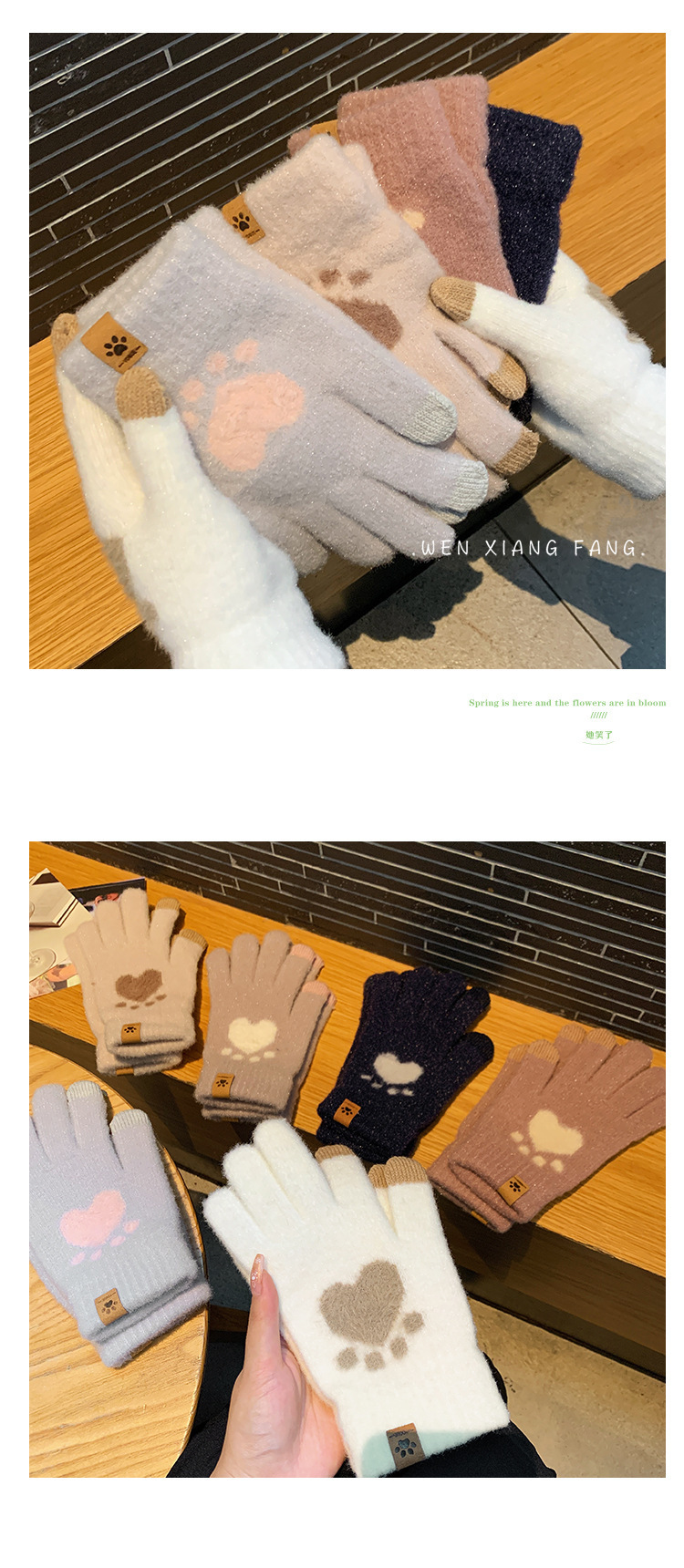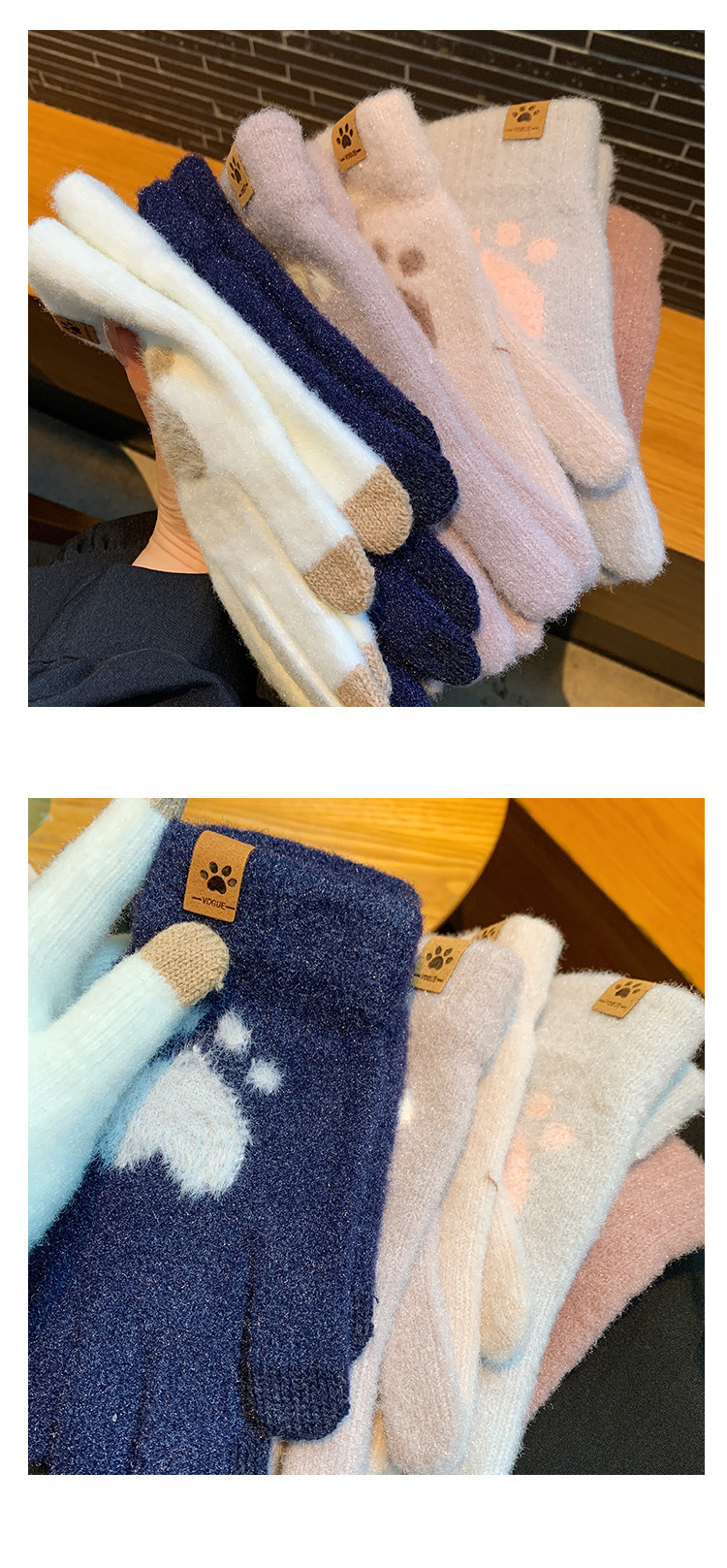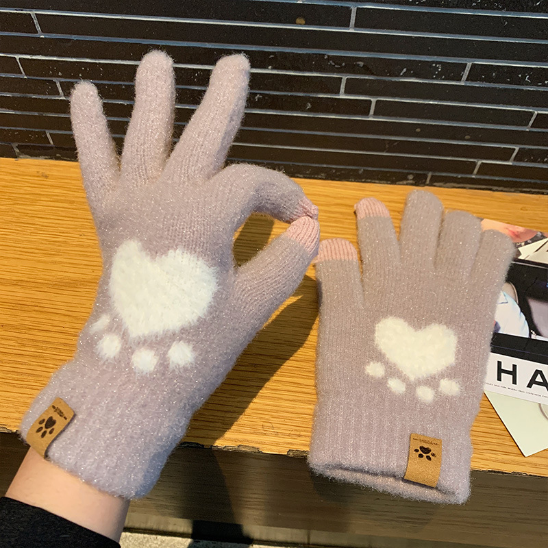 귀여운 봉제 양모 사이클링 장갑 여성의 겨울 두꺼운 따뜻한 터치 스크린 니트 방한 손가락 겨울 학생들을위한 겨울스토어 가기
