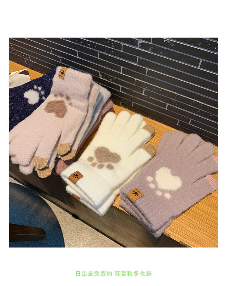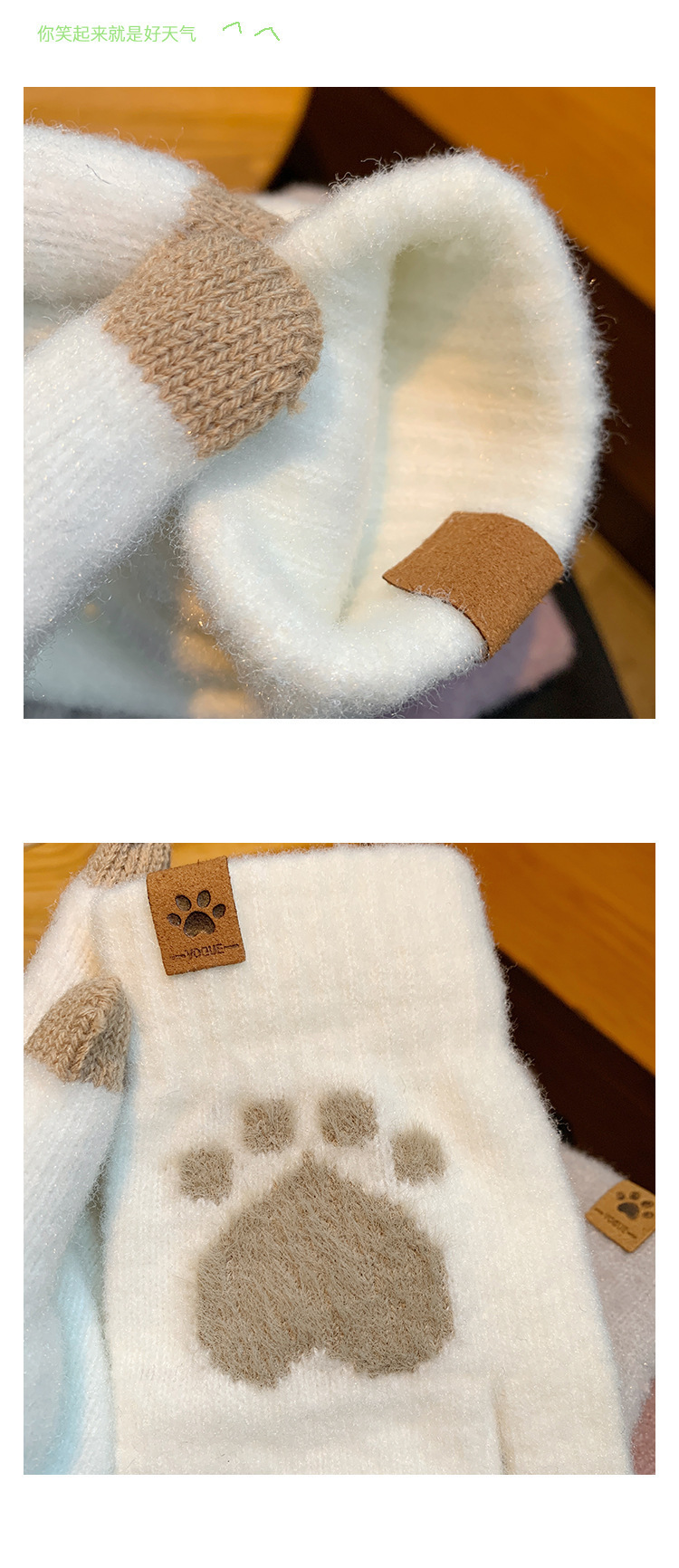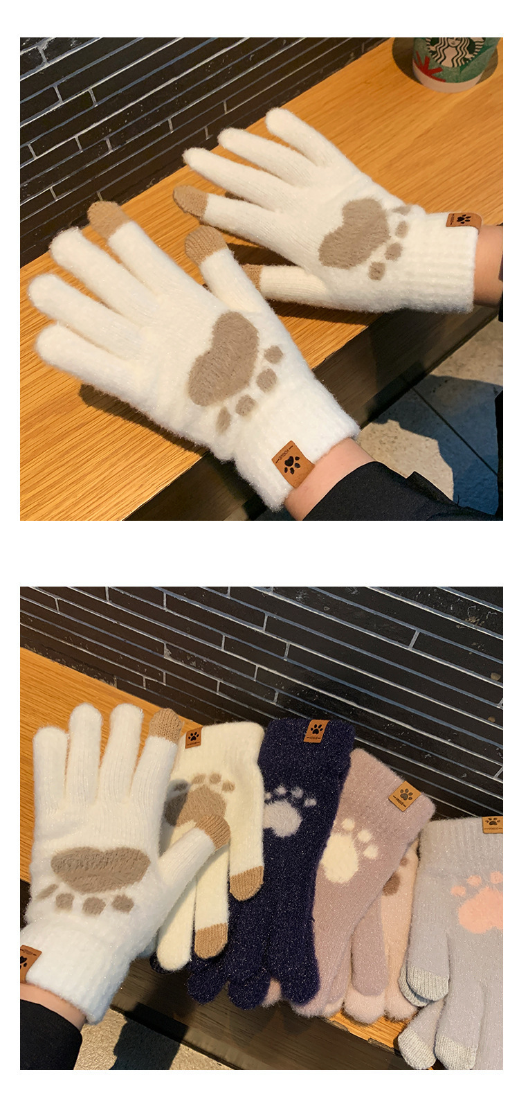 귀여운 봉제 양모 사이클링 장갑 여성의 겨울 두꺼운 따뜻한 터치 스크린 니트 방한 손가락 겨울 학생들을위한 겨울스토어 가기