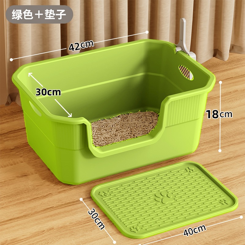 • [샌드 방지 세트] 녹색 고양이 배변 상자 + 모래 누출 보드 + 무료 고양이 배변 국자