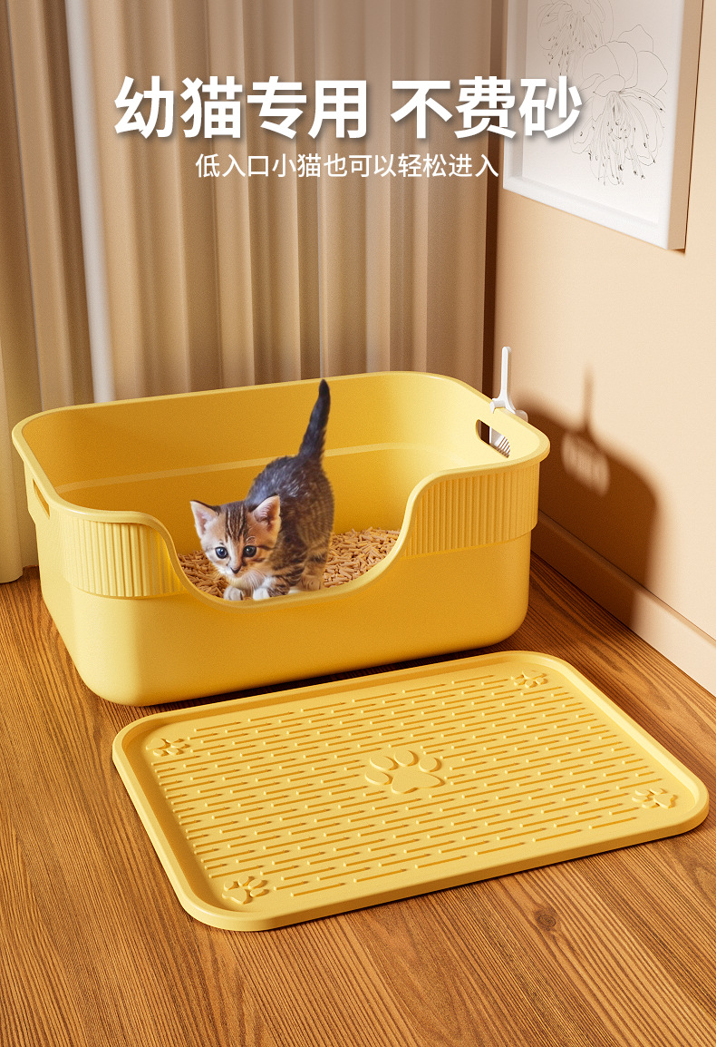 • [샌드 방지 세트] 노란색 고양이 배변 상자 + 모래 누출 보드 + 무료 고양이 배변 국자