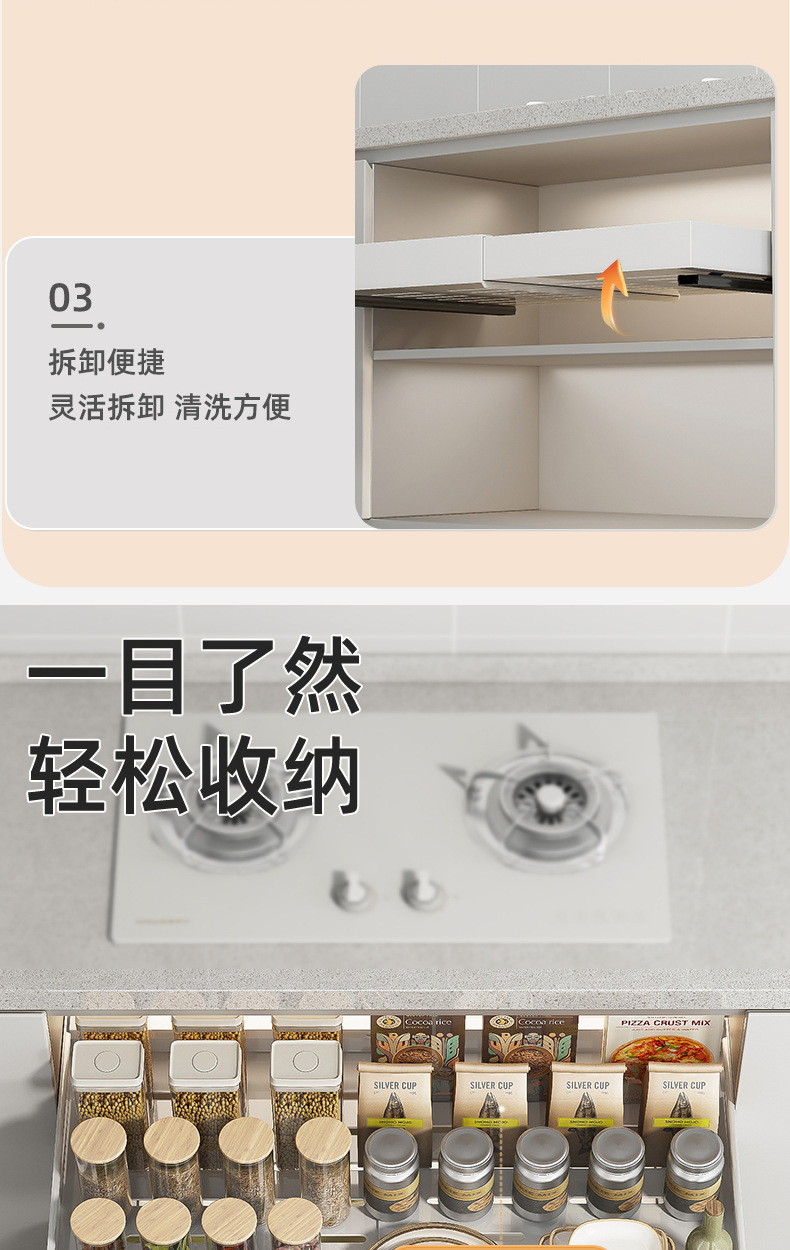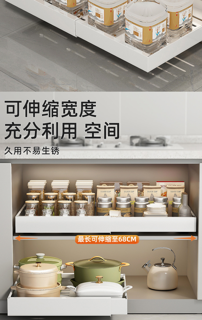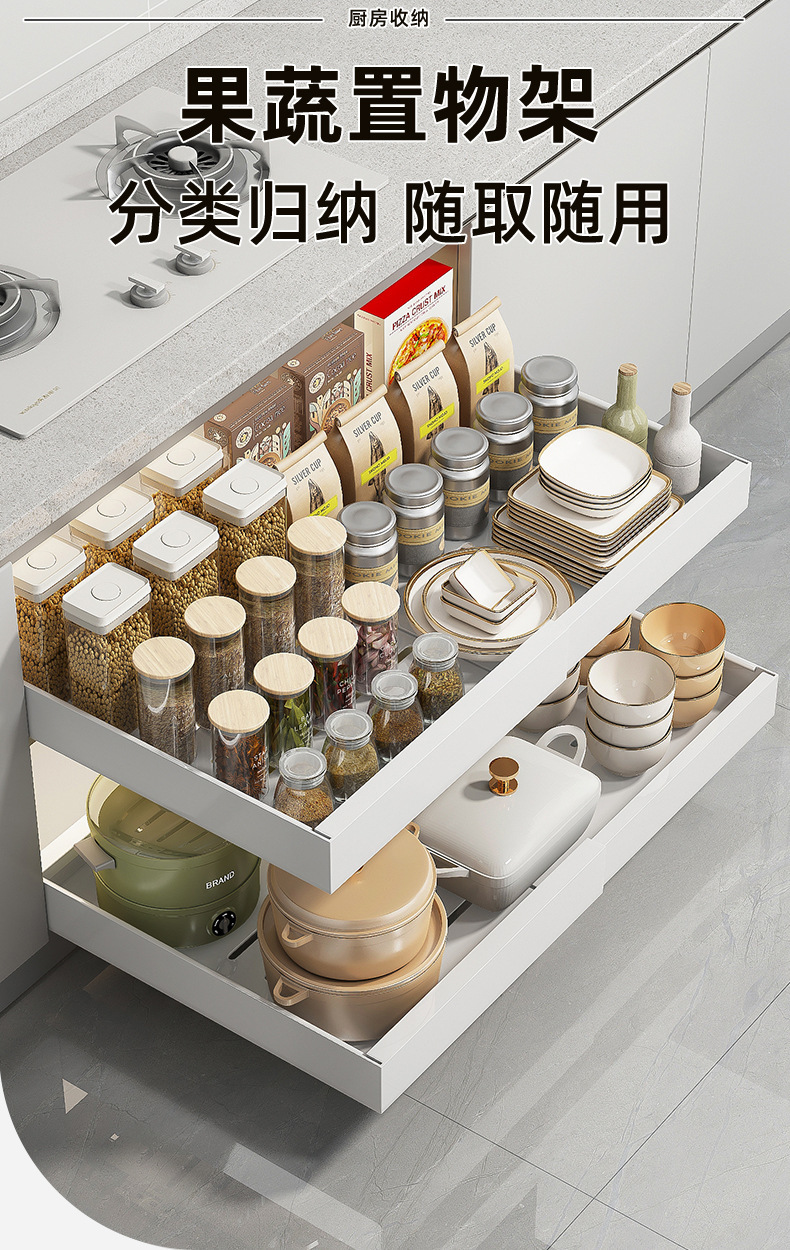 개폐식 캐비닛 레일 형 풀아웃 랙 주방 보관 랙 파티션 레이어드 랙 캐비닛 내부 조미료 냄비 보울 보관스토어 가기